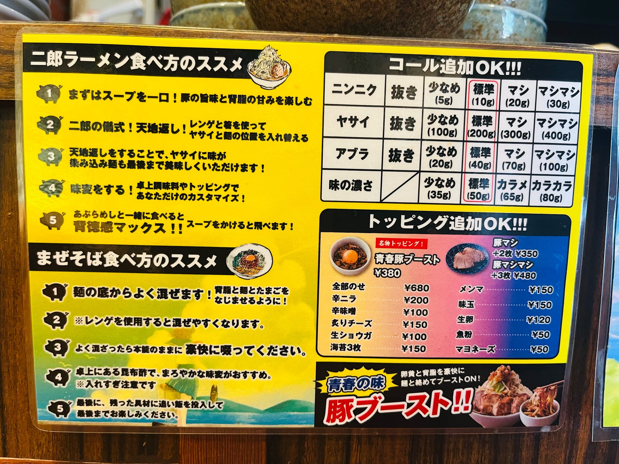 お店によって麺やコールの量は少な目での注文が可能だったり、コールの仕方、その量が分かりやすく表記されているお店も増えてきました。