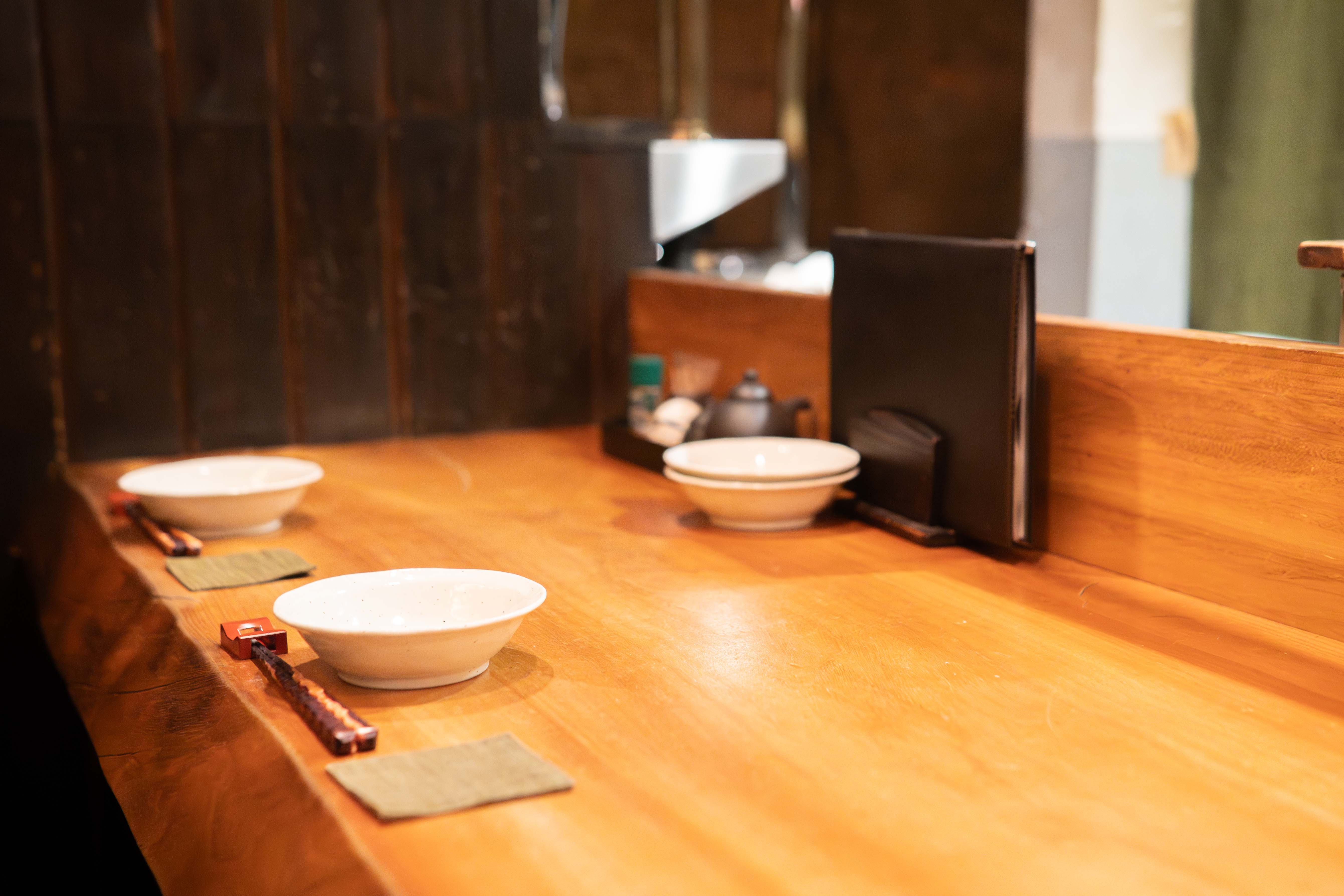 厨房をぐるりと囲むように配置されたカウンター席からは、お出汁の香りがほのかに漂ってきます。グループで過ごせるテーブル席もあり、シーンに合わせて使いやすそう!