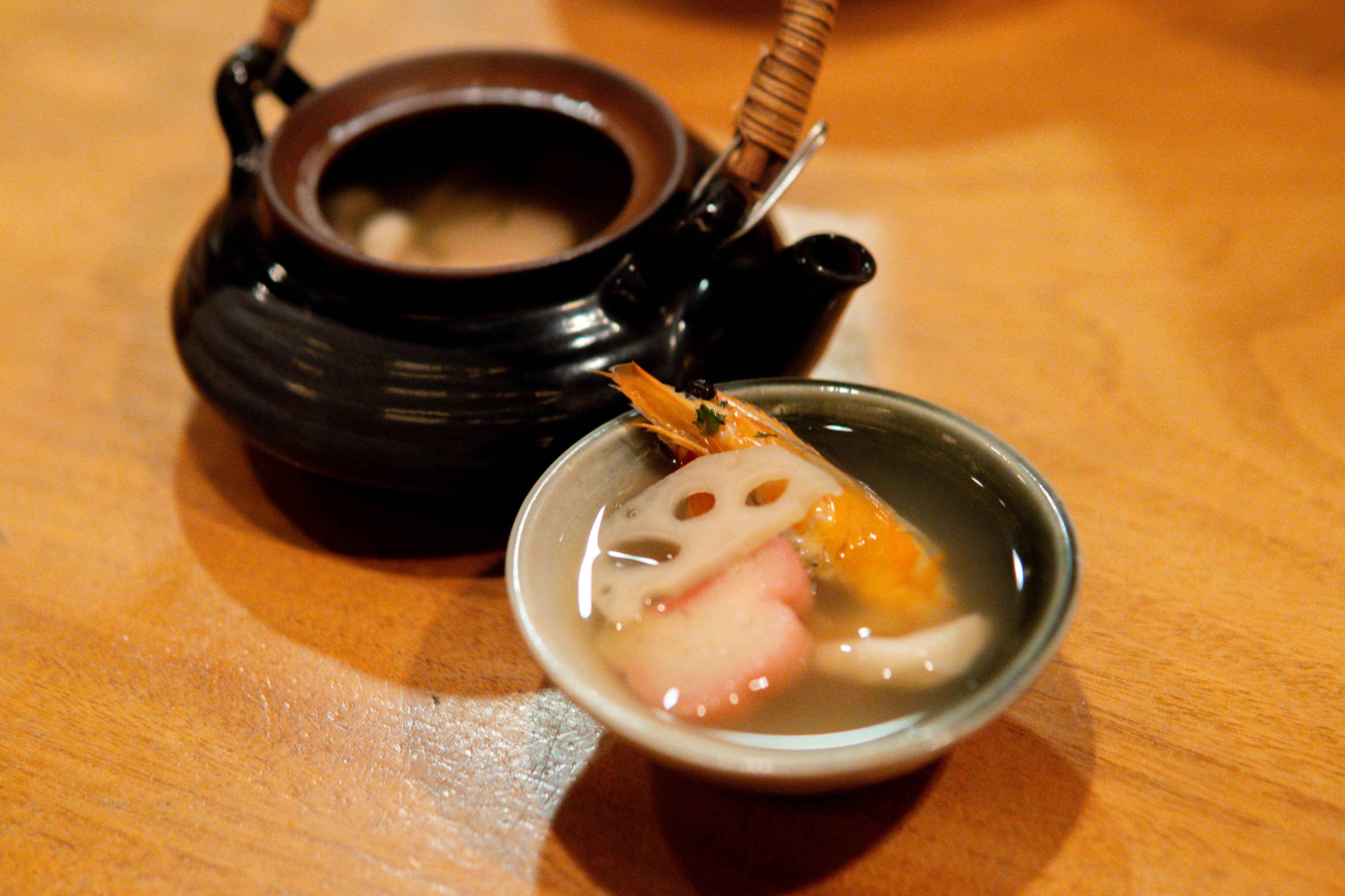 エビや生麩など、お出汁が浸った具材は、どれも優しい味わい…。