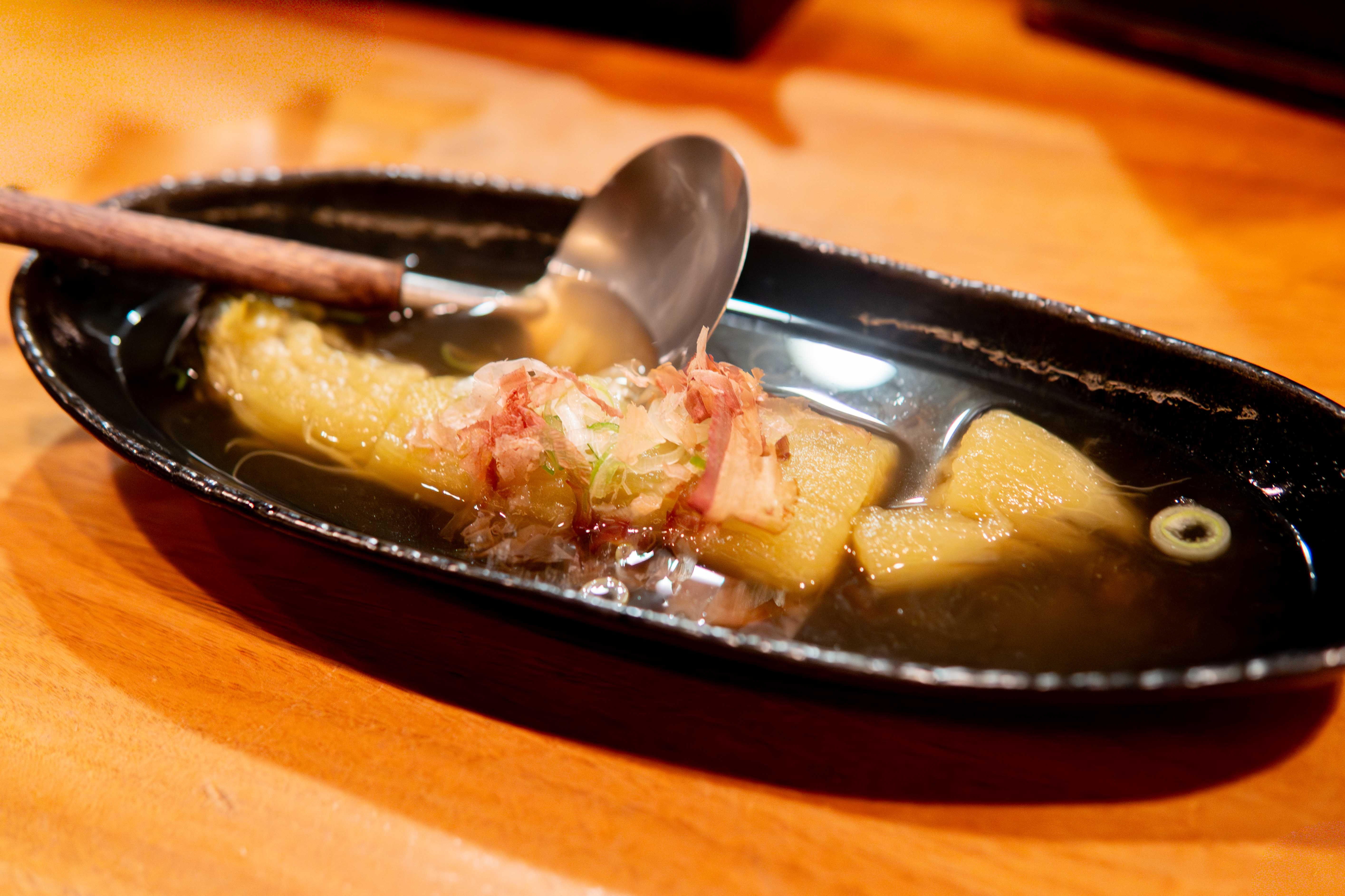 見た目からは想像できないほど柔らかく、芯が透き通るほどしっかりとお出汁が染み込んでいるんです。