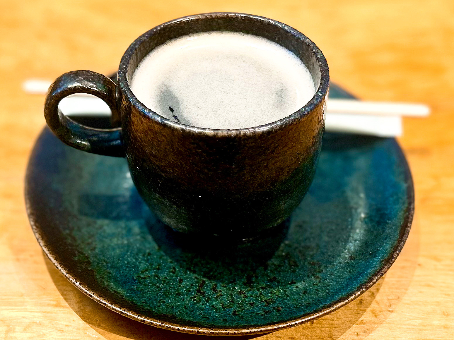 器が陶器っぽくて高級感がありおしゃれなコーヒー。少し飲むだけでなんだかホッとした気分になれます。
