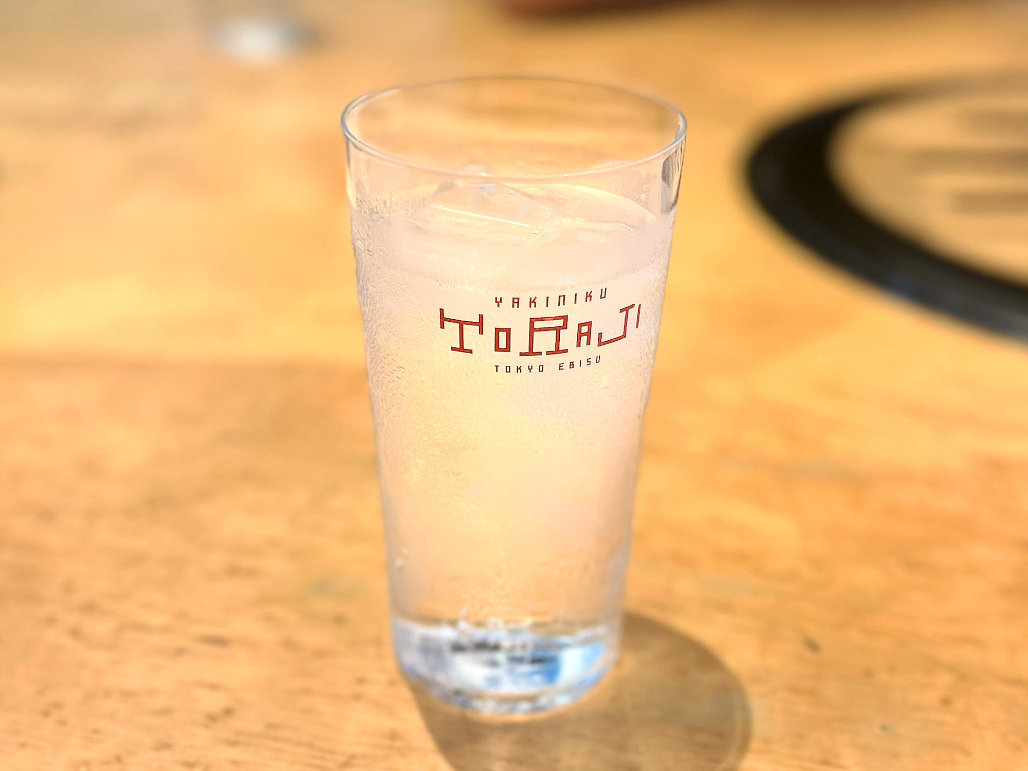 席に座ったらさっそくお冷が!グラスにお店のロゴが書いてあり、とてもかわいいです。