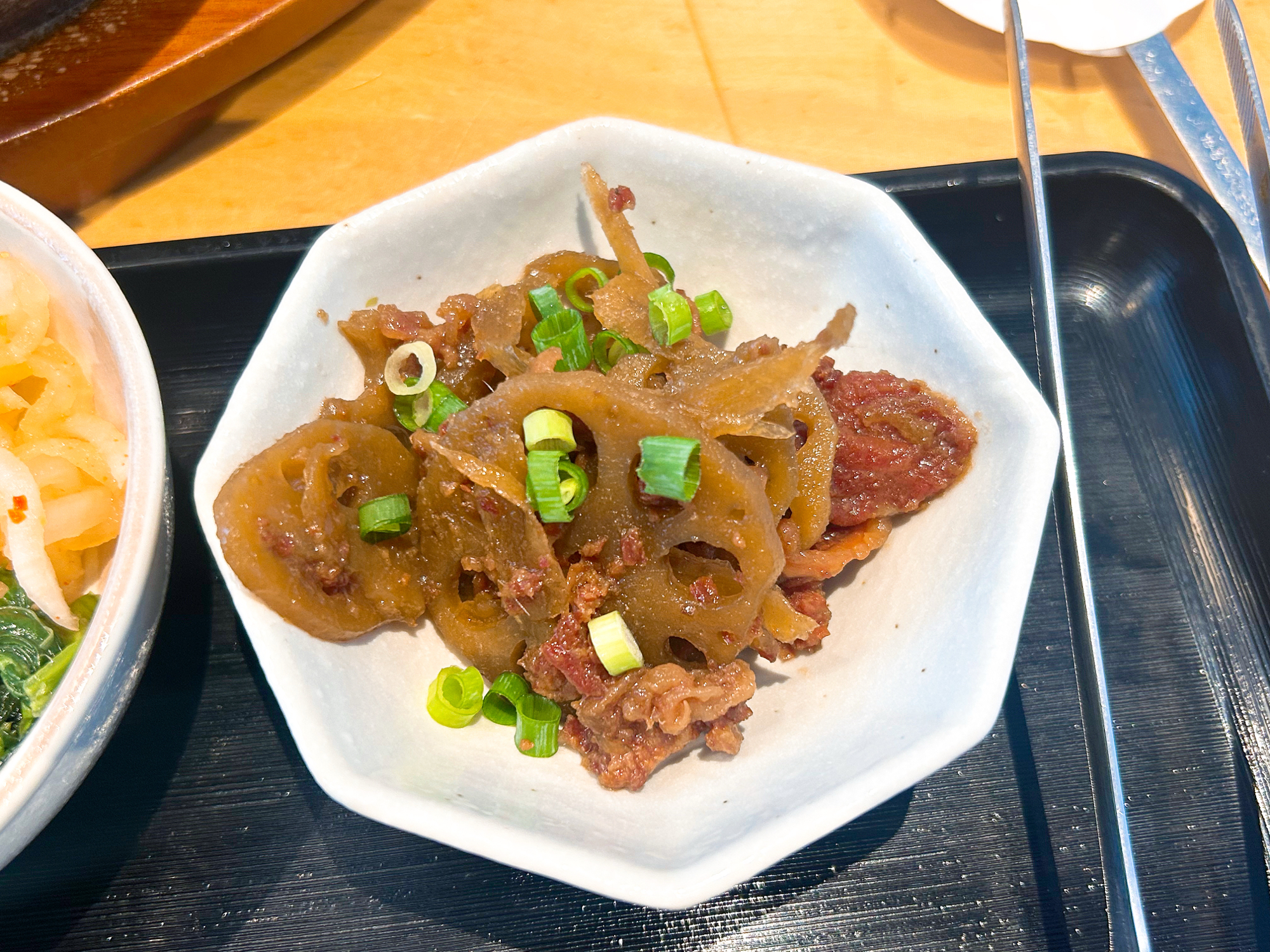 小鉢の1品目はレンコンと牛肉のしぐれでした。