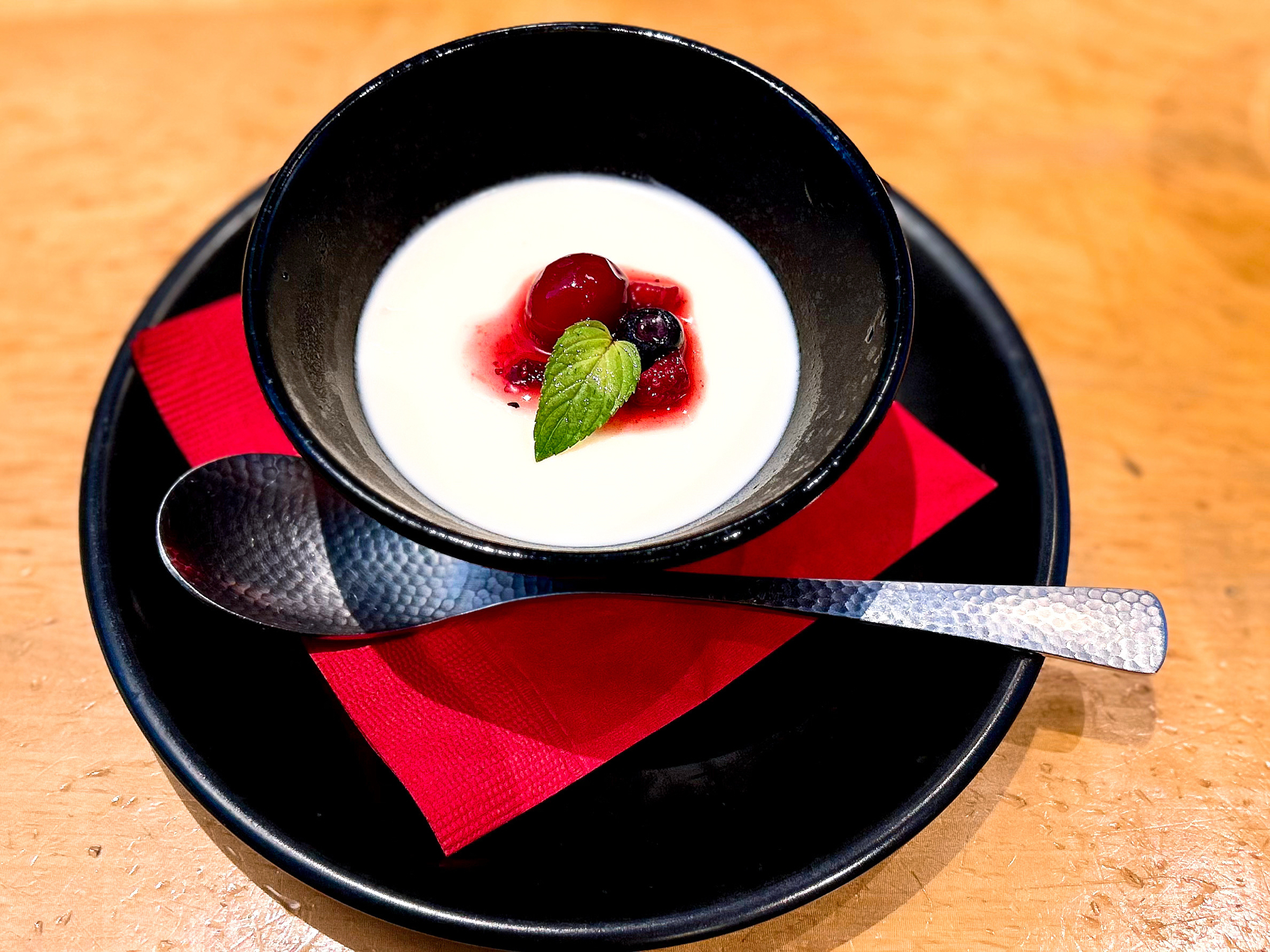 すべての食材が出揃った後はトラジオリジナルのミルクバーと湯呑みがいただけました。最後までお店のサービス精神に感動!