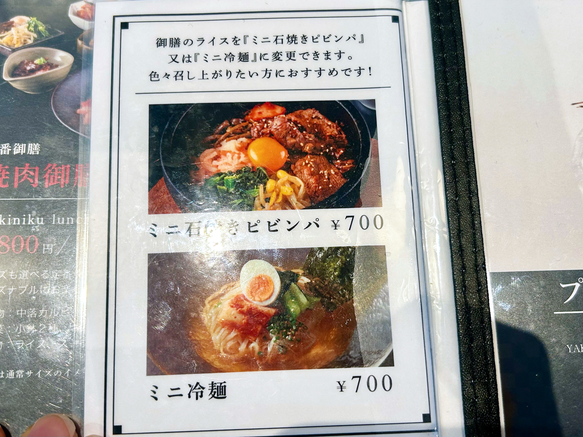 また、ライスをミニ石焼きピビンパorミニ冷麺に変更できたり、ライス大盛りの無料サービスも!お店のサービス精神にあっぱれです。