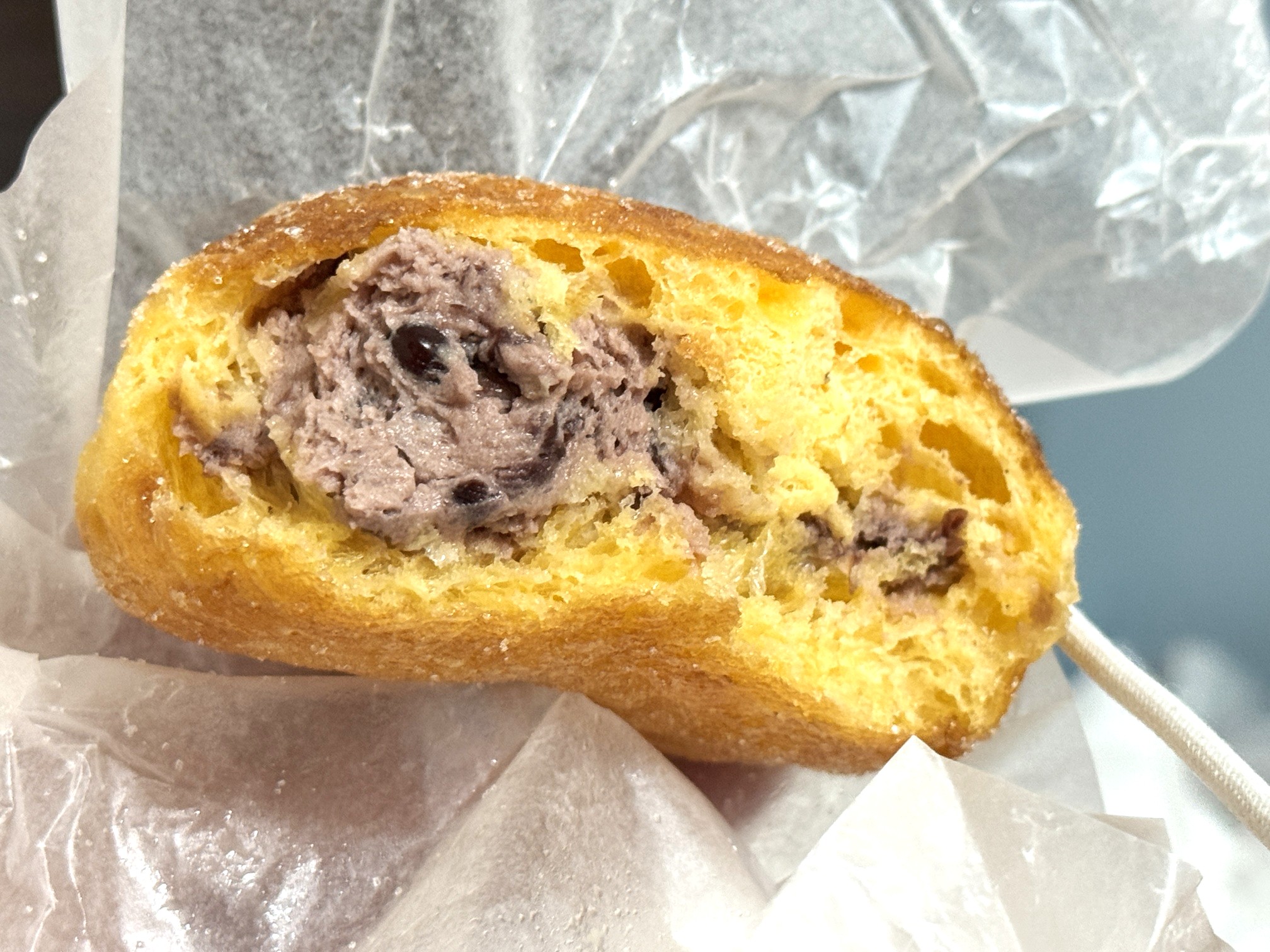 こちらは名古屋店限定の「餡生ドーナツ」。歯切れの良いドーナツに北海道産小豆を使用した餡生クリームを入れた、あんドーナツと生ドーナツのいいとこどりが嬉しいひと品です。
