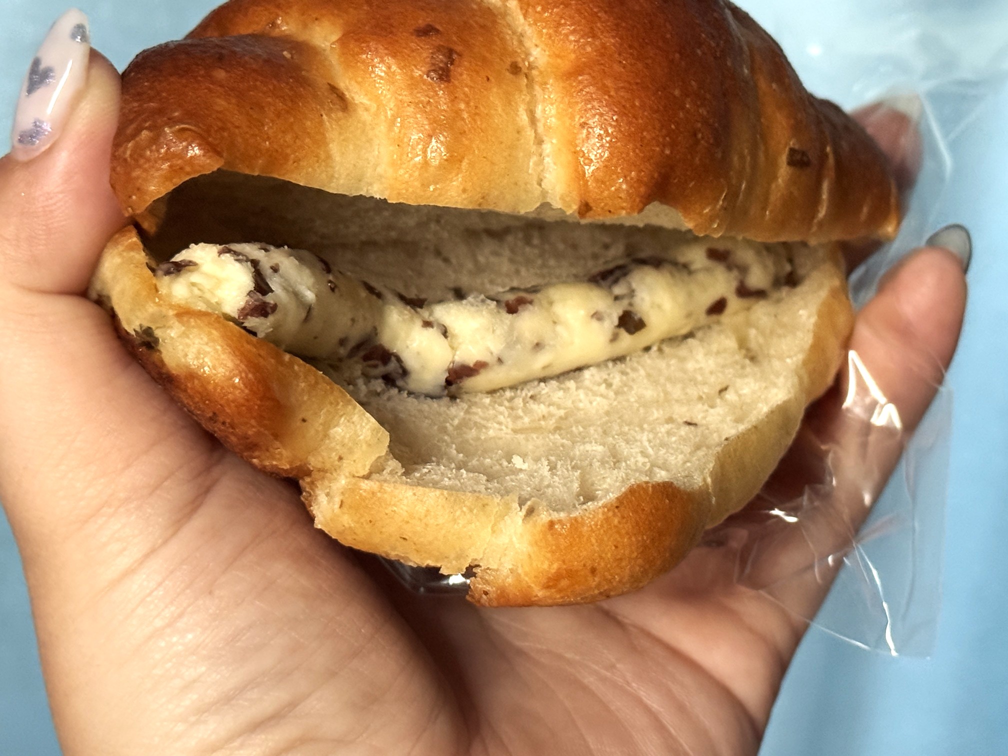 塩パンはバターを包み込んでから焼き上げるものが一般的ですが、この商品は海藻バターをあとから挟んでいます。