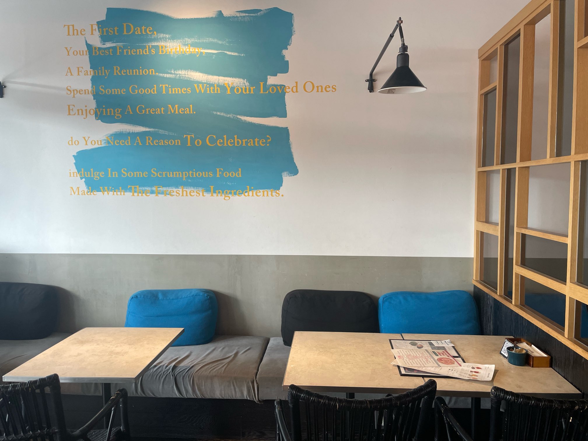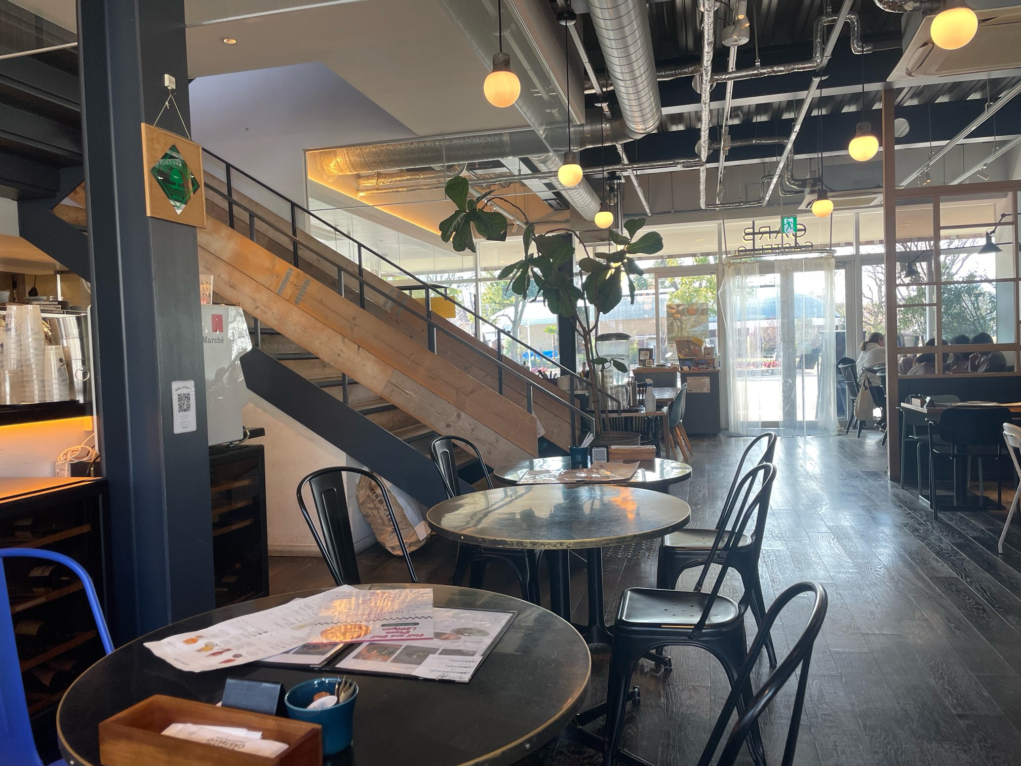 店内は天井が高く、ふっと空間が抜けている開放感。総席数が230席であるにも関わらず、テーブルとテーブルの間隔にはゆとりがあり、広々とした落ち着いた店内はとても心地よいです。