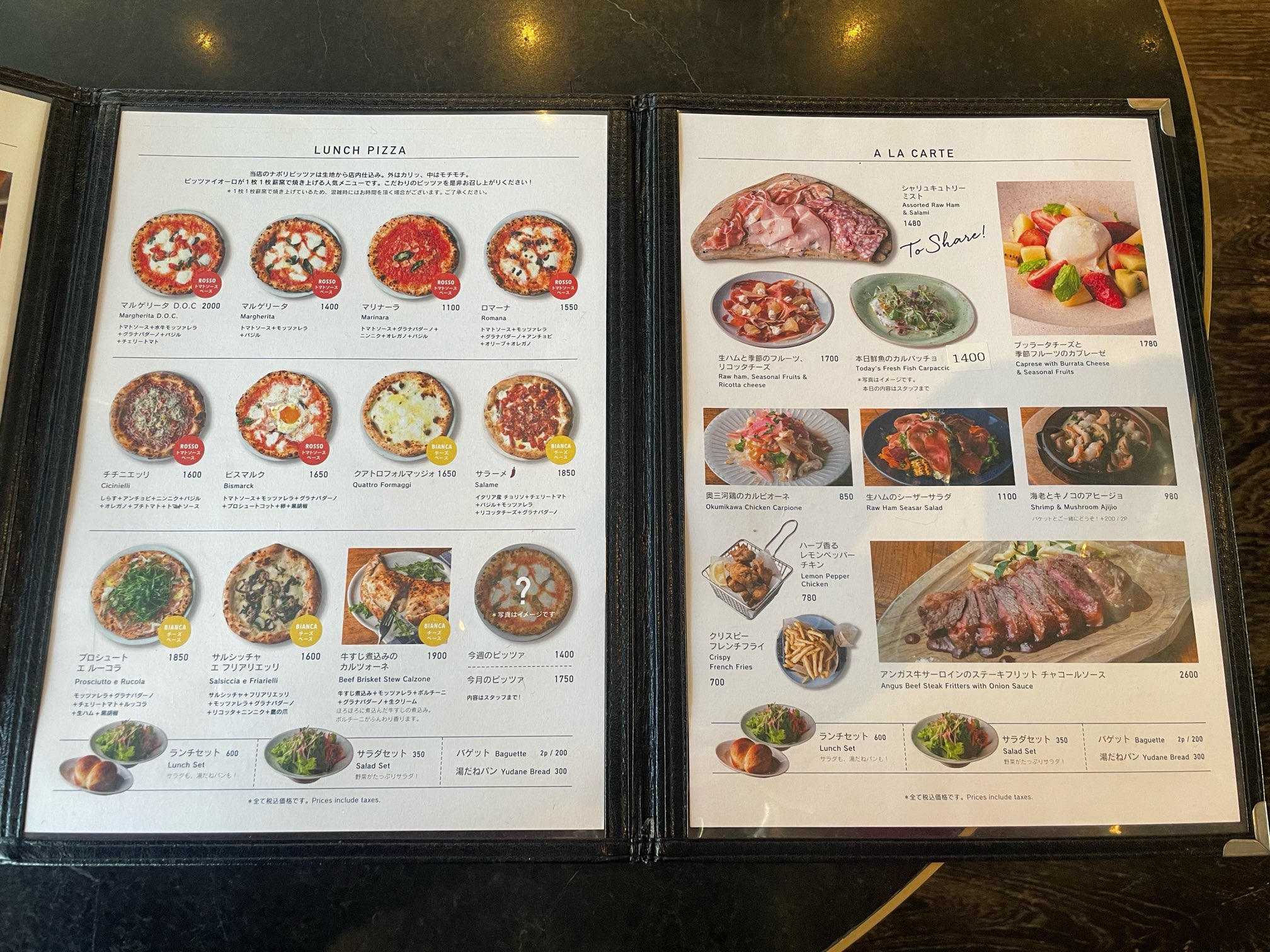 ピッツァやパスタ、アヒージョなど多彩なメニューが用意されています。
