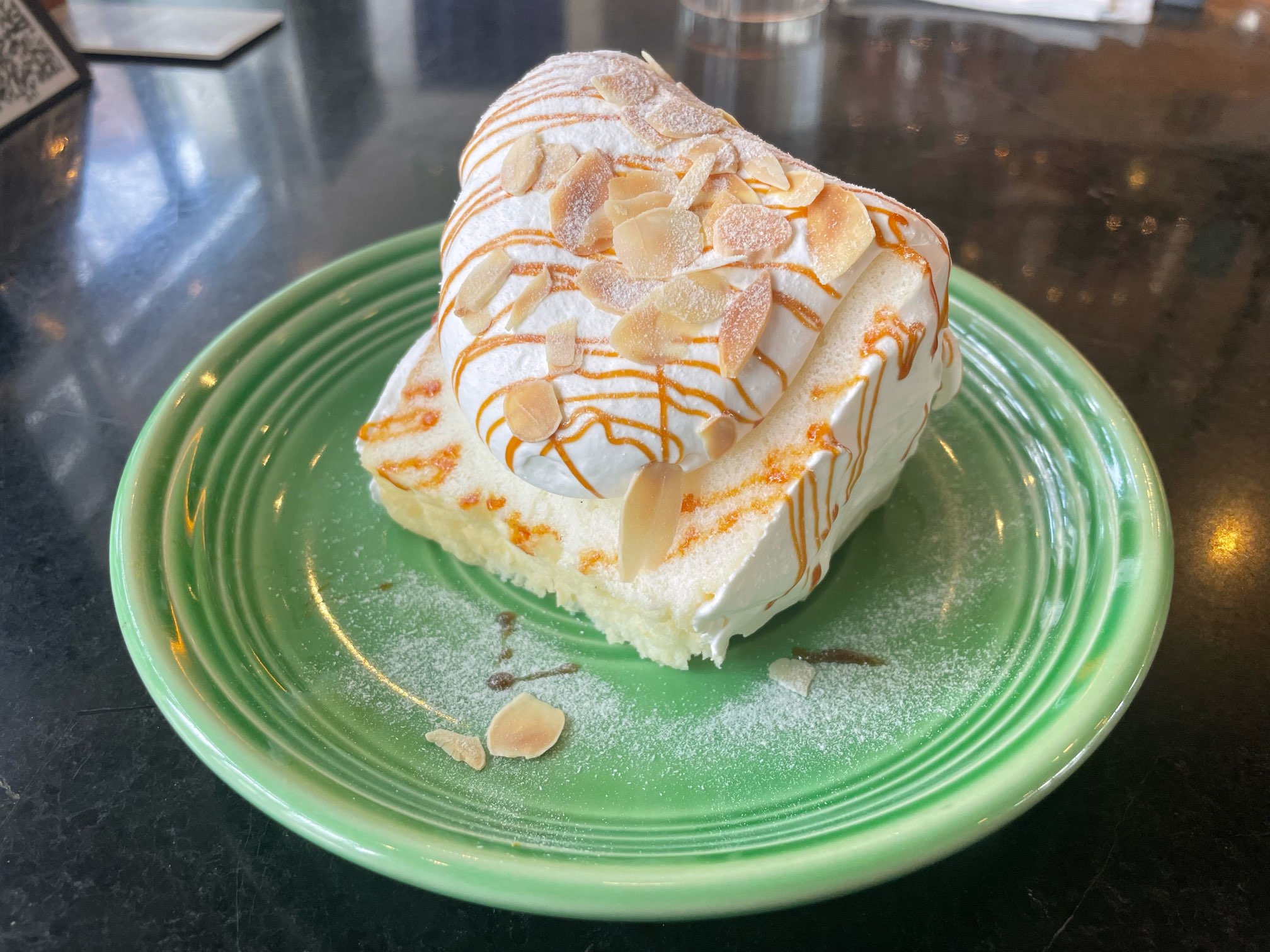 運ばれてきたケーキは想像以上に大きく、ホイップクリームもたっぷりと乗っていたため、かなり満足感があります。