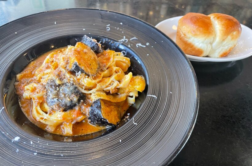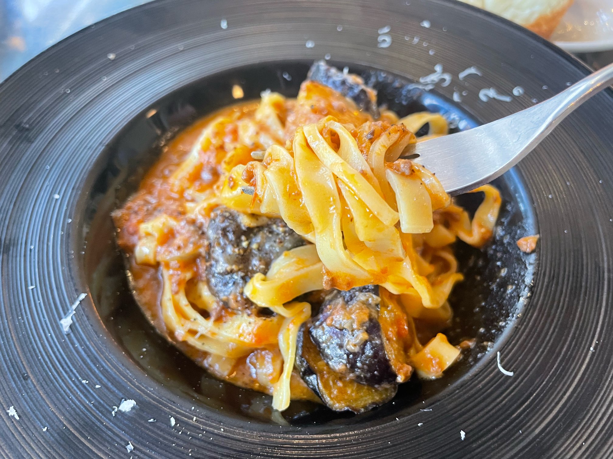 香ばしい茄子とじゅわっとほんのり甘みのあるひき肉は、タリアテッレの満足感をさらに底上げしてくれます。
