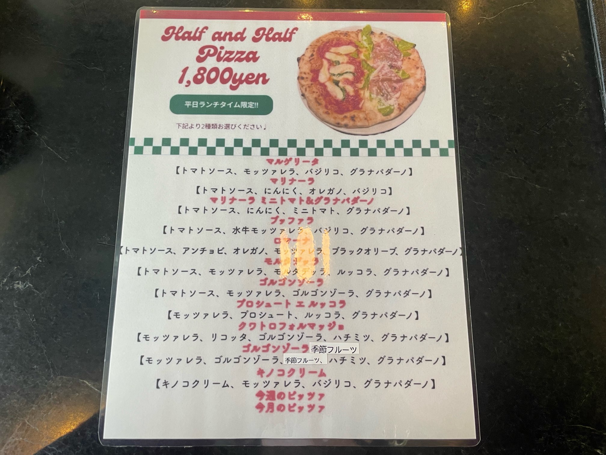 中でも、2種類のピッツァを1度にいただける「Half and Half Pizza」1800円(税込)は平日ランチタイム限定の超おすすめメニュー!