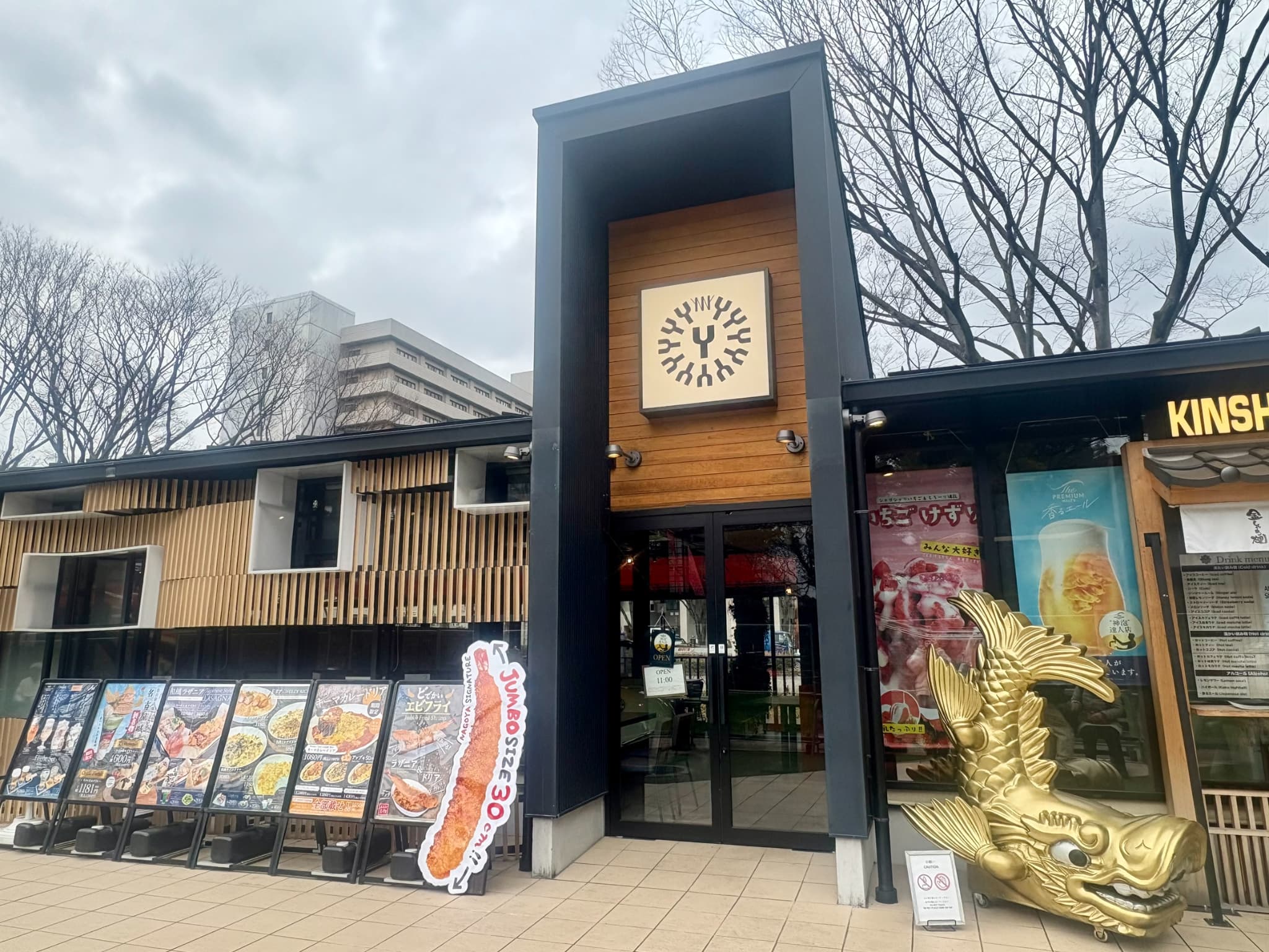 和を感じさせる木と黒を基調とした外観は、ラザニア専門店でありながらもどこか落ち着いた雰囲気。