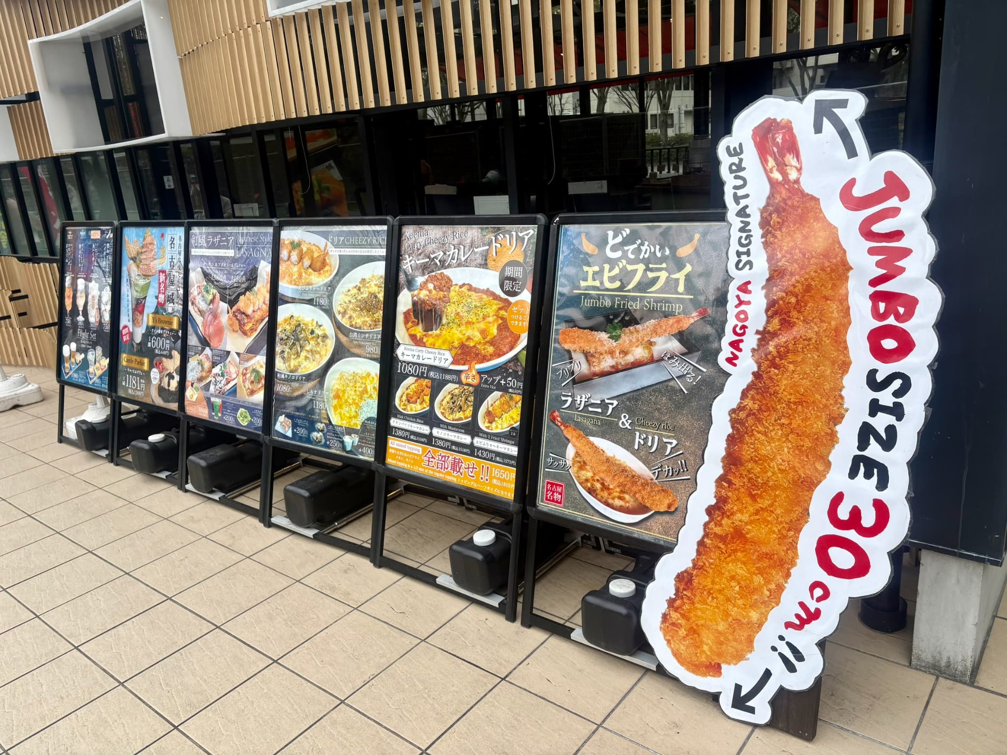 入り口前にはメニュー看板が並び、ラザニアだけでなく、名古屋らしい料理がずらり!どれにしようか迷うほどです…。