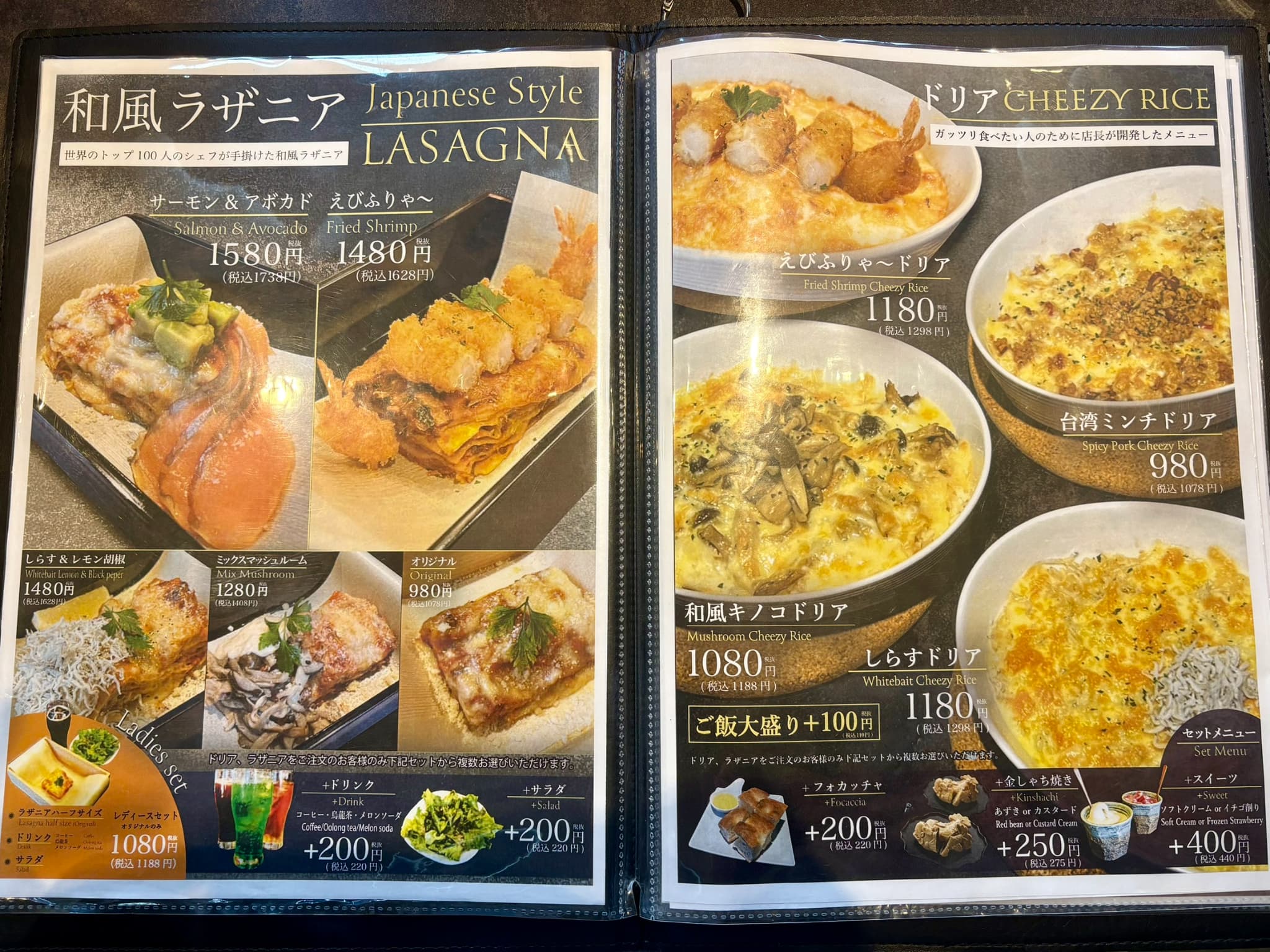 定番のラザニアはもちろん、名古屋名物・台湾ミンチを使った「金シャチ焼き」も楽しめます。