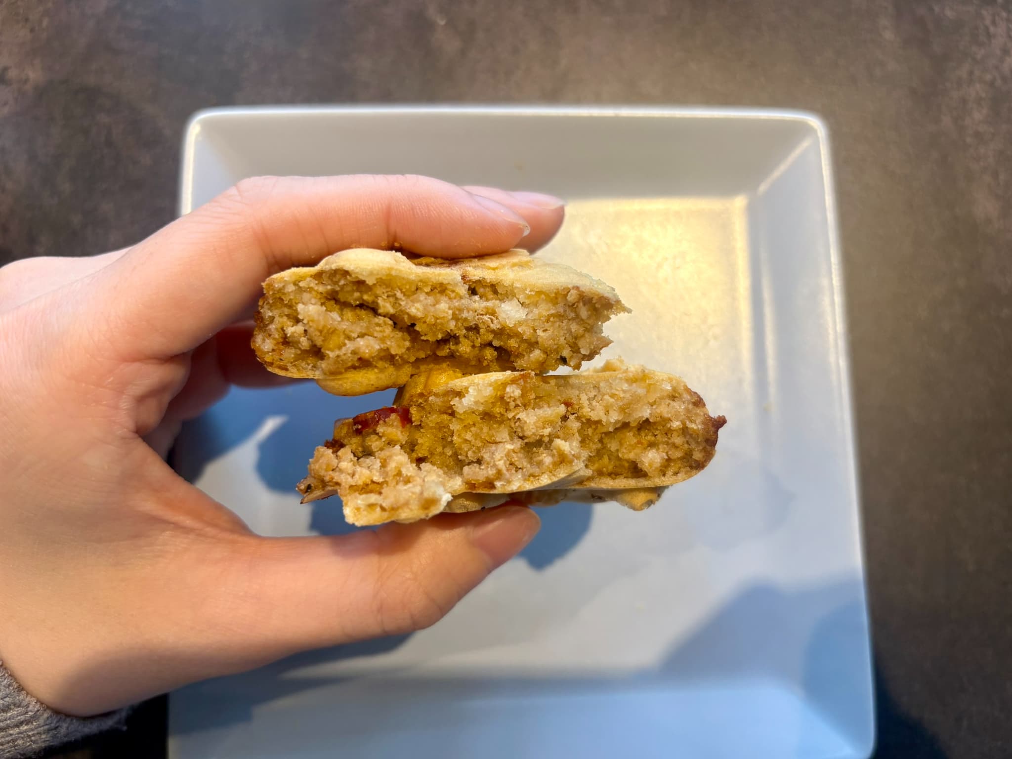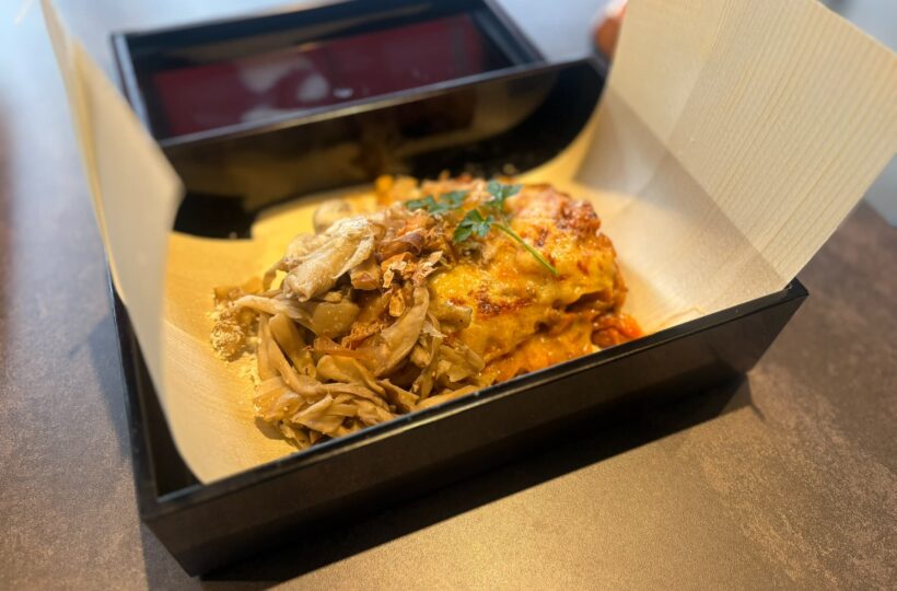 中には何層にも重なったラザニアがぎっしり。ひき肉の旨みがしっかり詰まっていて、食べ進めるたびに肉汁が広がります…。