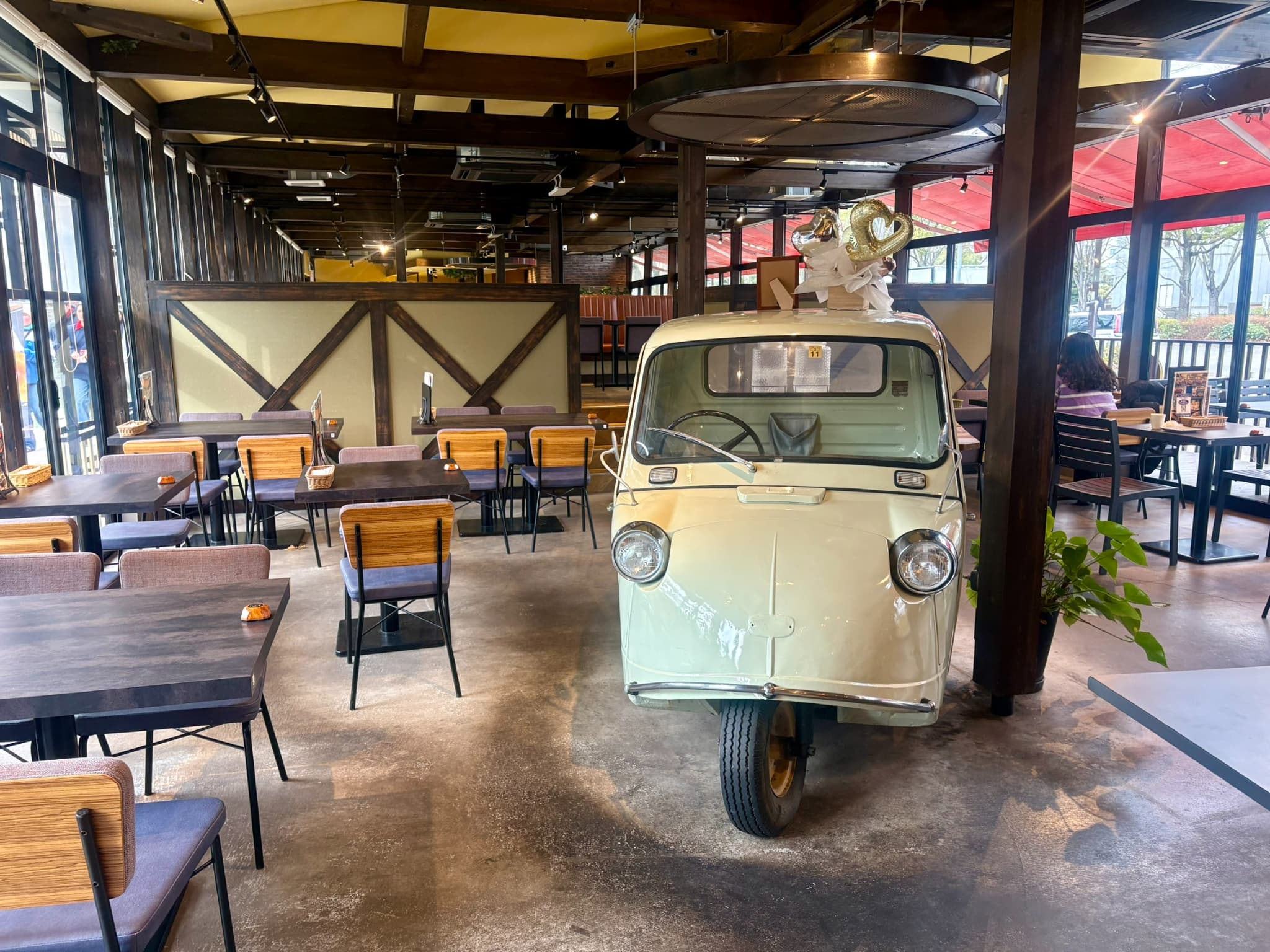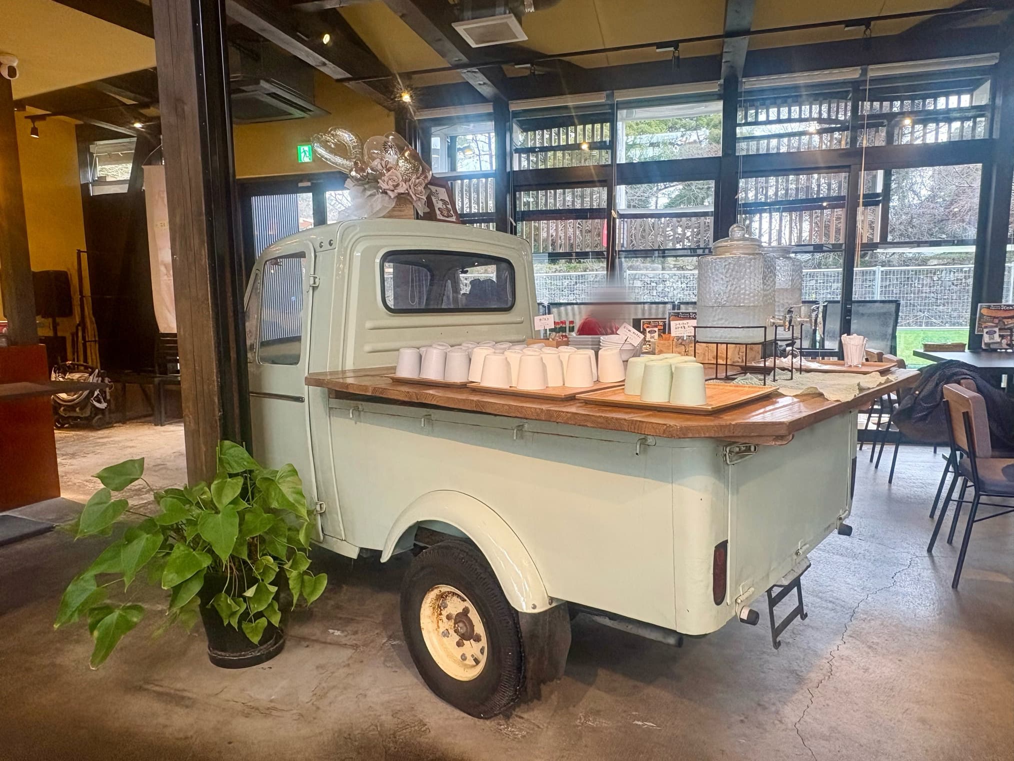 荷台がセルフサービスのドリンクコーナーになっているんです!思わず写真を撮りたくなるような、店内のアクセントにもなっていました。