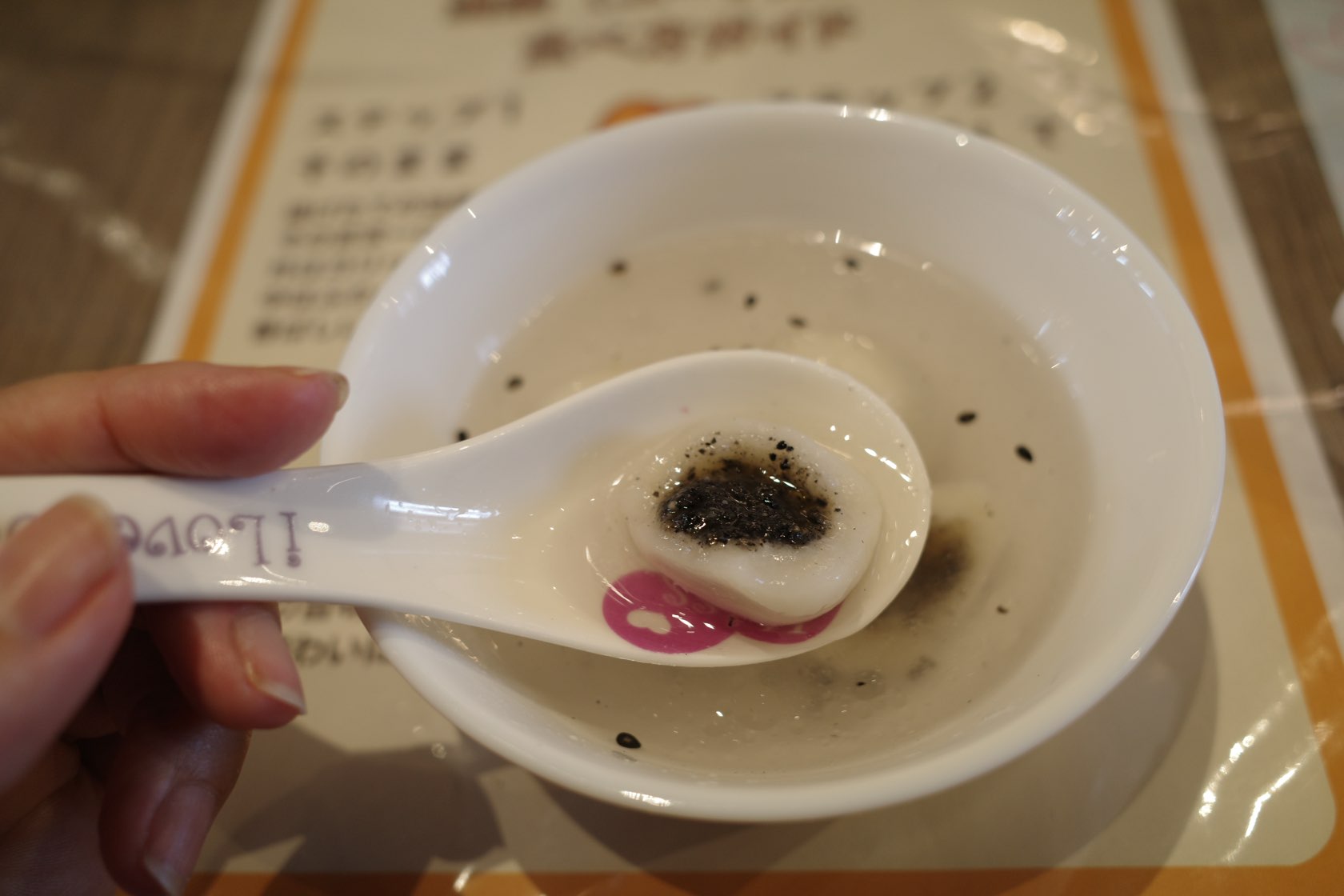 黒胡麻ペーストの餡が入ったもちもちとした食感と、やさしい甘さ。食事の締めくくりとして、これ以上ないほど穏やかな余韻を残してくれます。