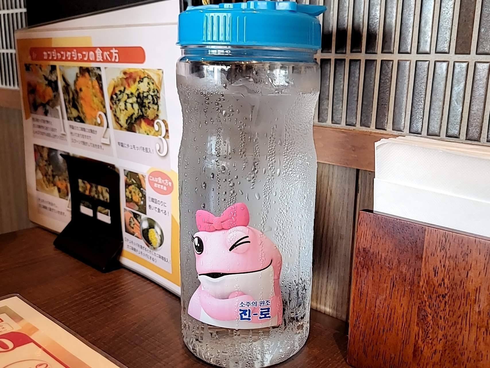 個人的によく韓国料理屋さんで見るタイプの水入れ容器がかわいくてツボでした。(笑)