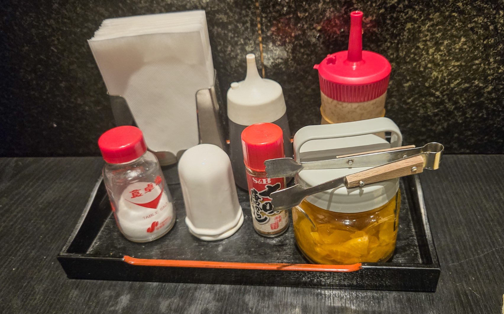 テーブルにはドレッシングが2種とたくあんもありました。