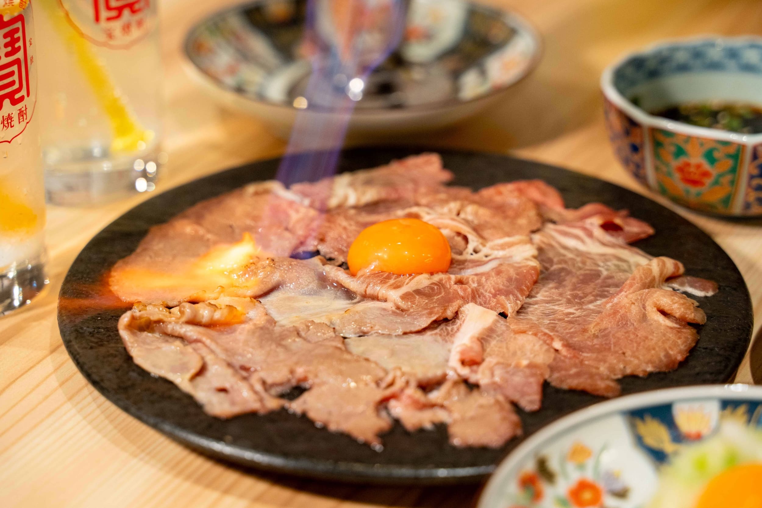 そして、「すき焼き炙りユッケ」も見逃せません。提供時にバーナーで炙る演出も、見ていてワクワクします◎