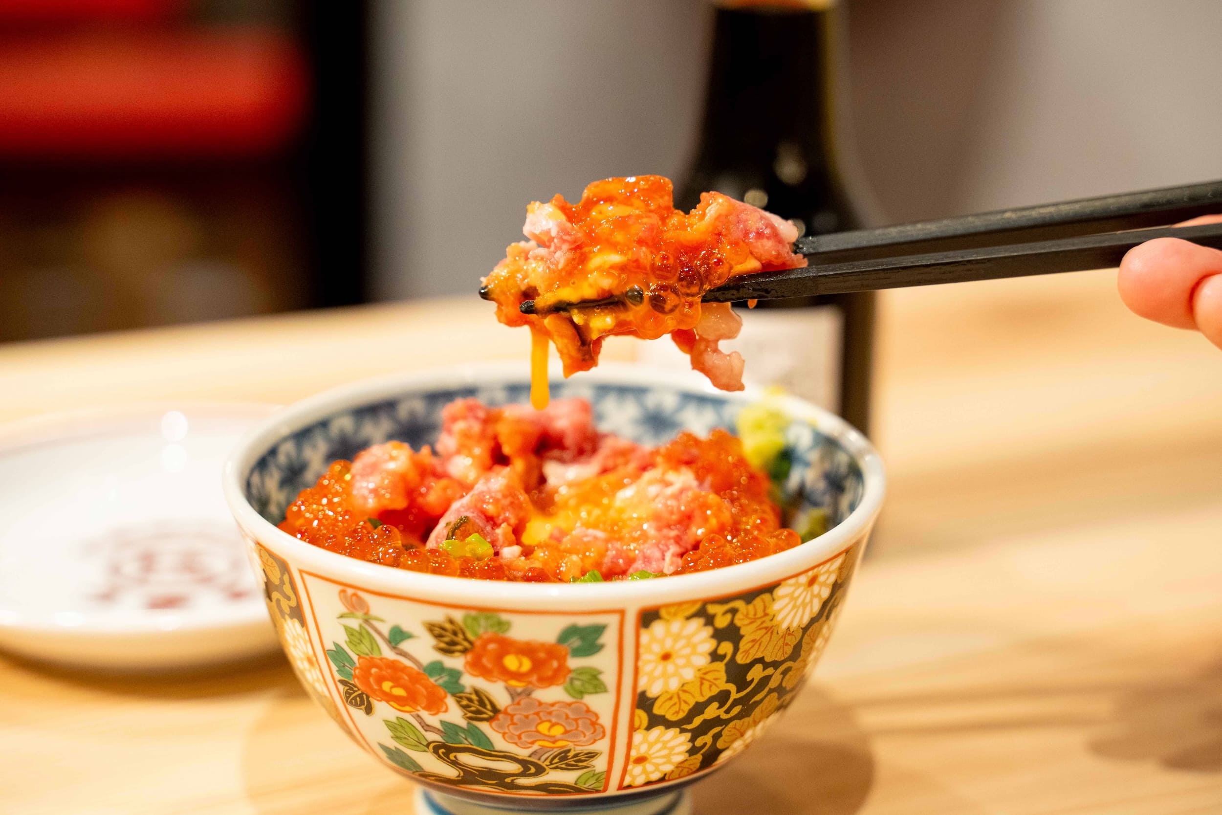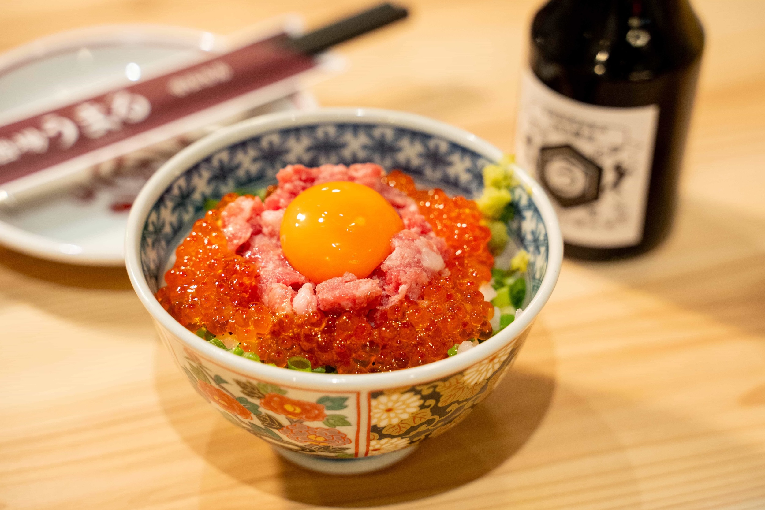 新鮮なトロユッケ肉とたっぷりのいくらを合わせた、締めにぴったりの丼メニュー。