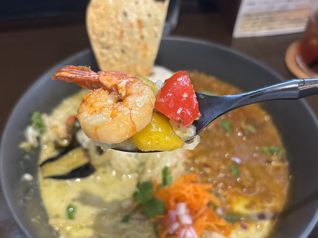 辛さよりも魚介の旨みとココナッツの旨みが全面に感じられ、あっさりいただけます。