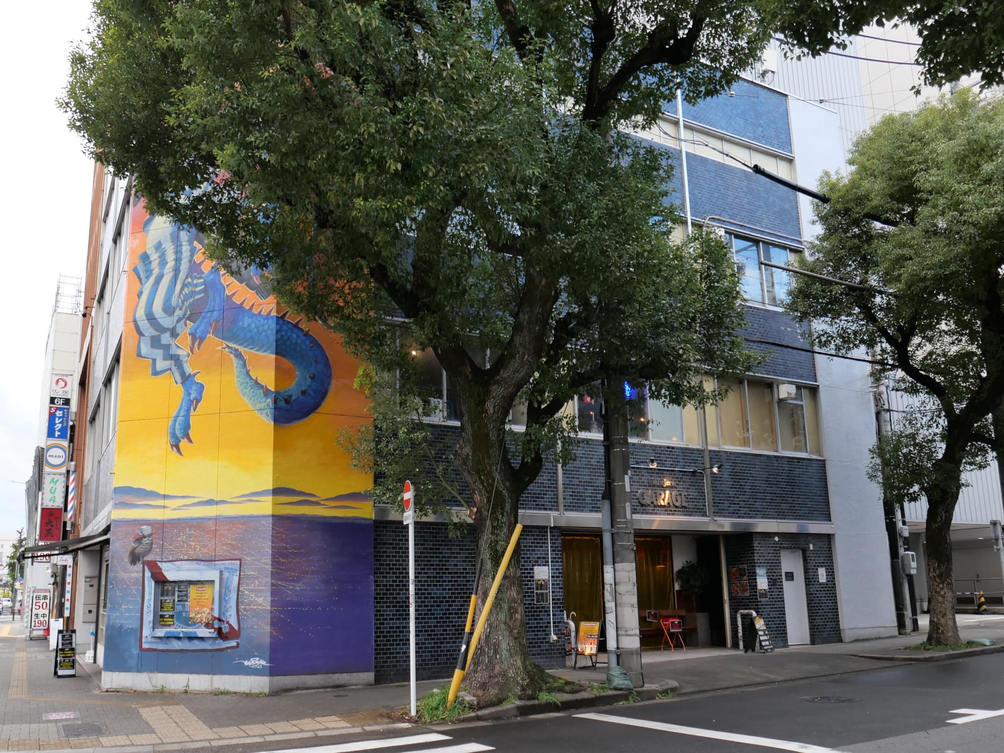 外壁に絵が描かれた、目立つビルの1階にあるお店です。