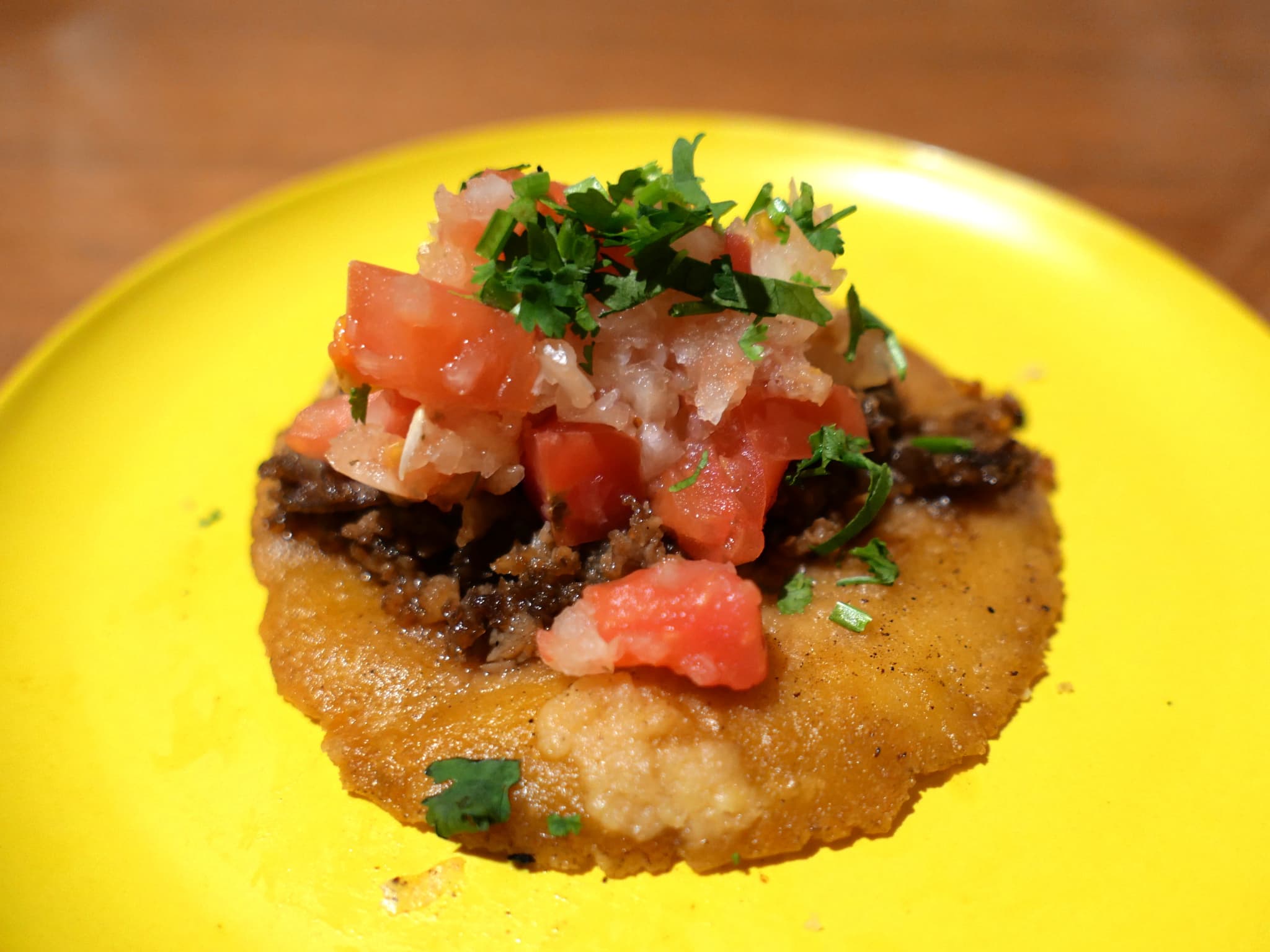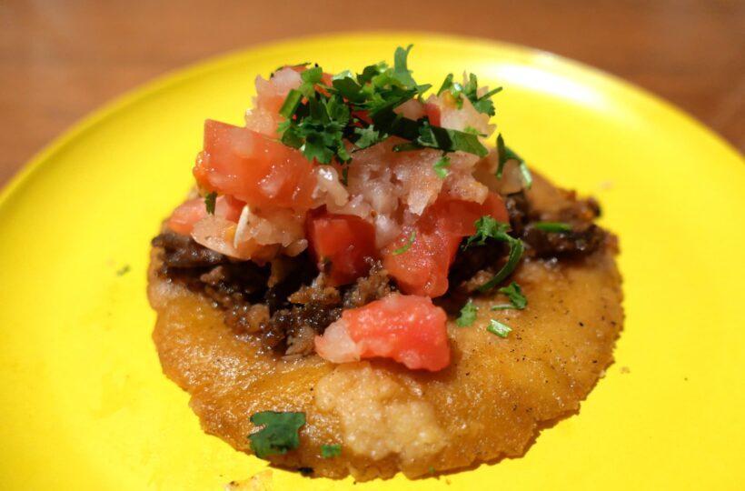 香ばしいトルティーヤと甘辛い牛肉の組み合わせがジャンキーです。