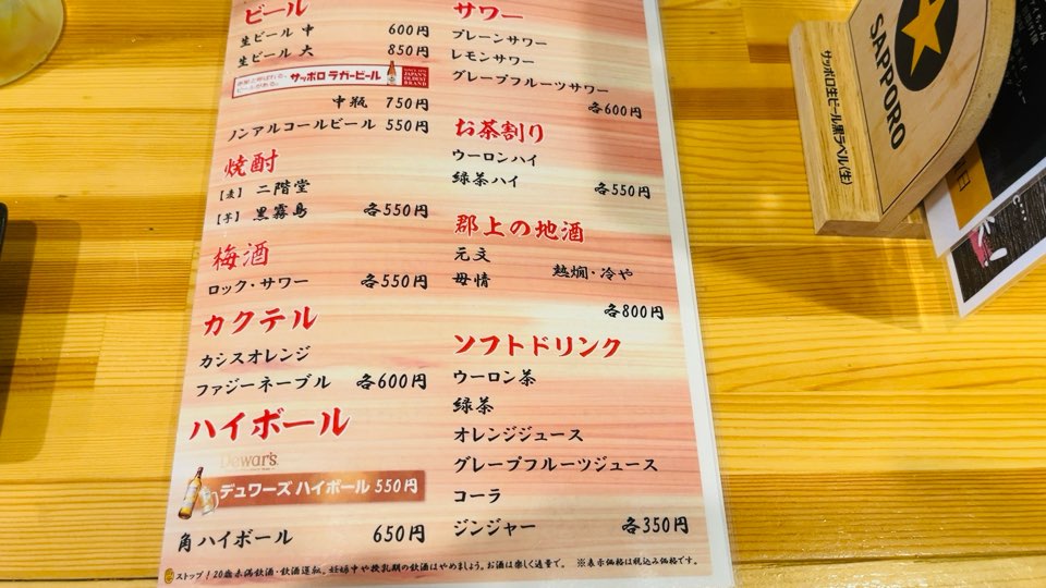 なんとハッピーアワーで平日17時から19時、土日祝日は12時から16時までの間は生ビール、ハイボール、酎ハイが何杯飲んでも380円!ありがてぇ…感謝…圧倒的感謝!