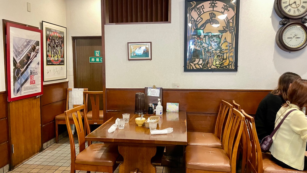 4人掛けのテーブルも複数あり、ファミリーで過ごすランチタイムにもぴったりです。レトロで木目調のテーブルが温かみのある店内。