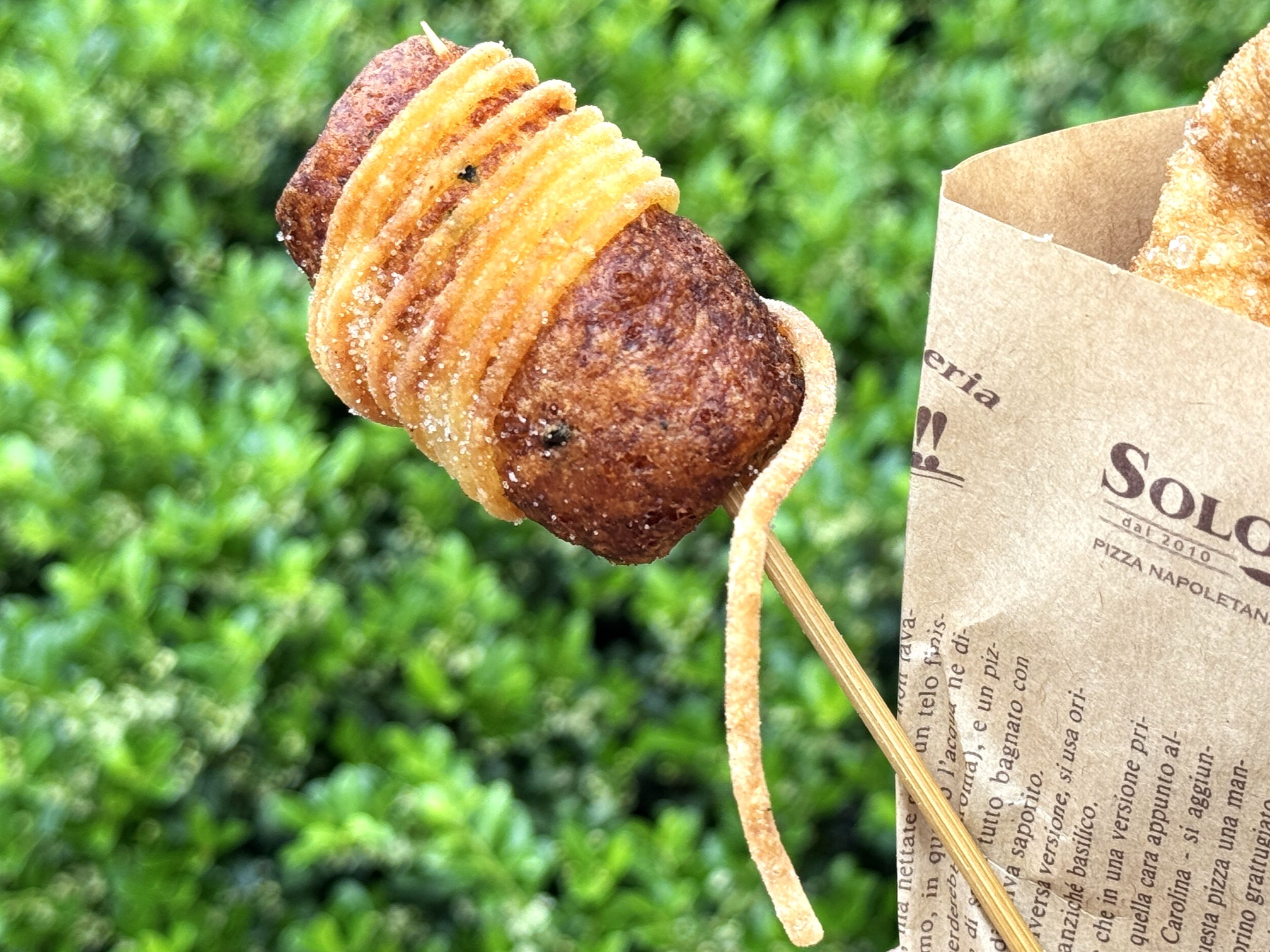 揚げ物は「クロッケ」をチョイス。じゃがいものコロッケにパスタを巻き付けて揚げたユニークな見た目は写真映えも抜群でしょう。