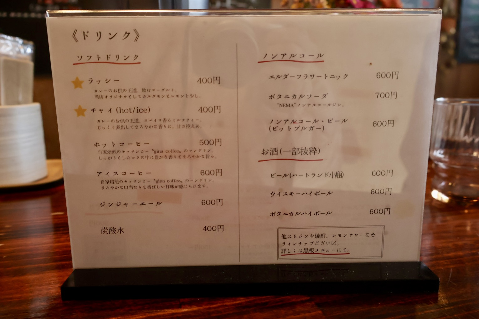 他にも、カレーに合うラッシーやチャイなど、さまざまなドリンクがありました。