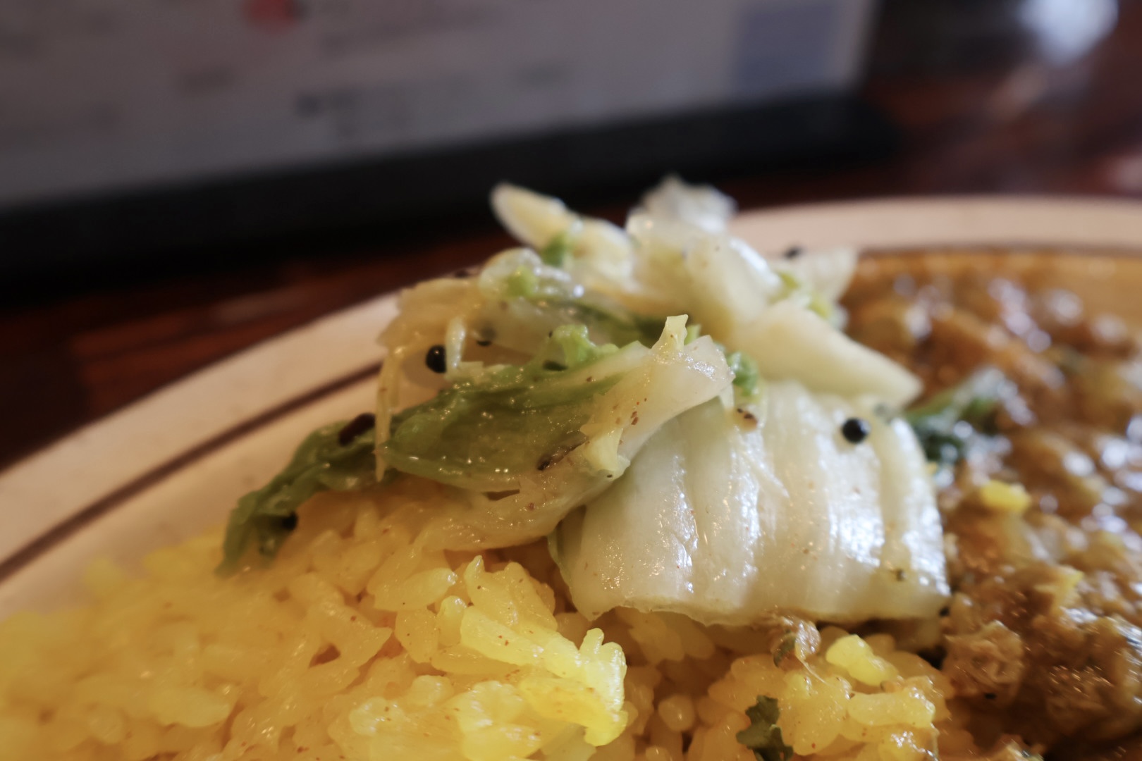 添えられていた白菜はスパイス香るさっぱりとした味わい。カレーの合間に食べることで口の中がリセットされました!