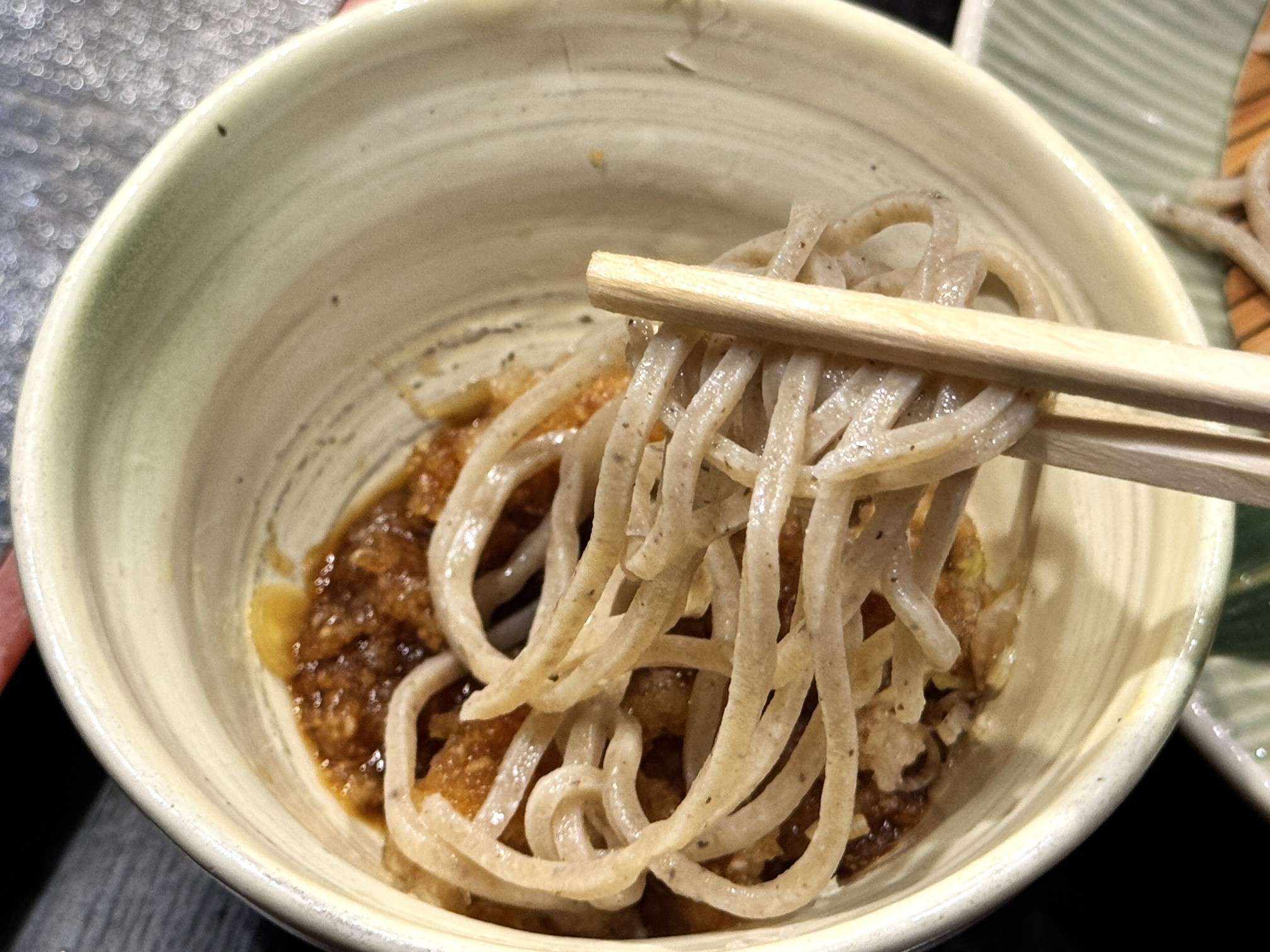 一般的なそばつゆとは異なり出汁の風味はありませんが、大根おろしと刻みねぎのさっぱりとした味わいがとても美味しく、甘さのない純粋な生醤油の美味しさとそば本来の香りを楽しむことができました。