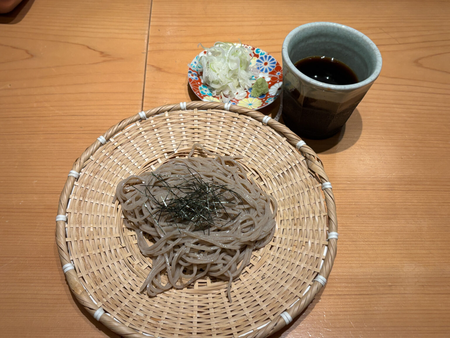 ざるそばは、つるりとした喉ごしとそば粉の香りをしっかりと堪能できる上品な仕立て。
