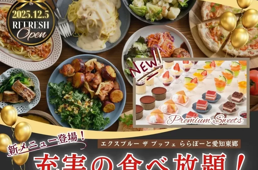 食欲の季節に嬉しいニュースが飛び込んできました。愛知県愛知郡東郷町にある「エクスブルー ザ ブッフェ ららぽーと愛知東郷店」が、2025年12月5日(金)に装い新たにリフレッシュオープンします!