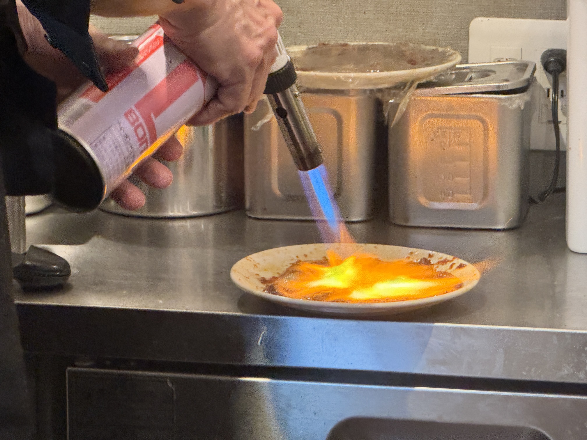 自家製チャーシューはそのまま食べても美味しいのですが、バーナーで炙るとさらに美味しく香ばしくなるとのこと。