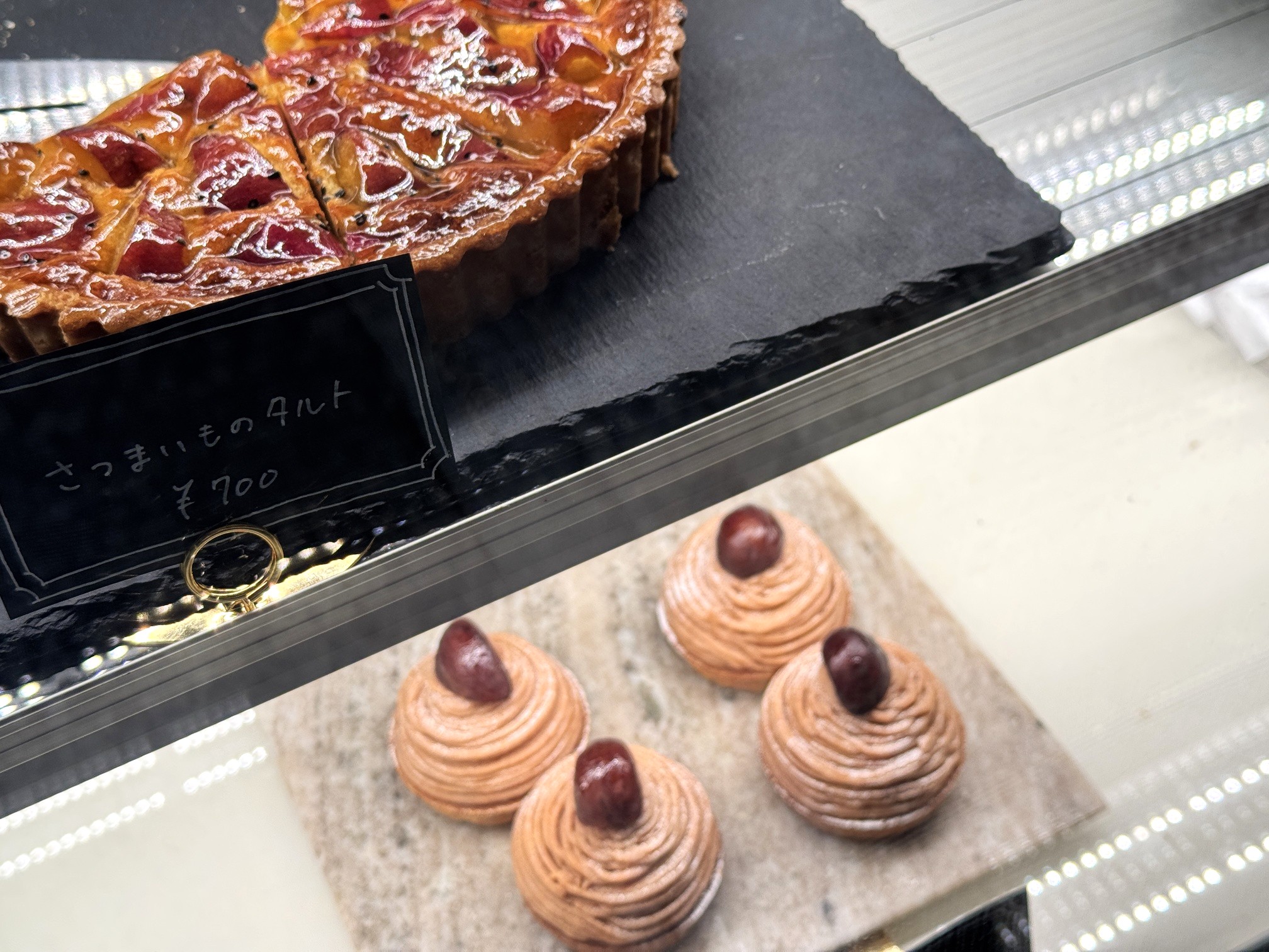 ショーケースに並んでいたのは、旬の素材を使った美味しそうなスイーツ。この日はサツマイモや栗を使ったスイーツが目立っていました。