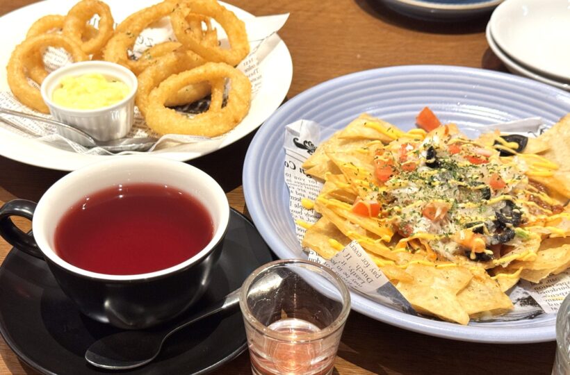 同店はランチから夜カフェまでロングランに楽しめる使い勝手の良いお店で、定番のコーヒーや食事メニューだけでなく、ちょっとお腹を満たしたいときにぴったりな軽食やスイーツ、お酒も楽しめるところが嬉しいポイント!この日は遅めのディナー前の0次会として、ここで小腹満たしをしようと足を運びました。