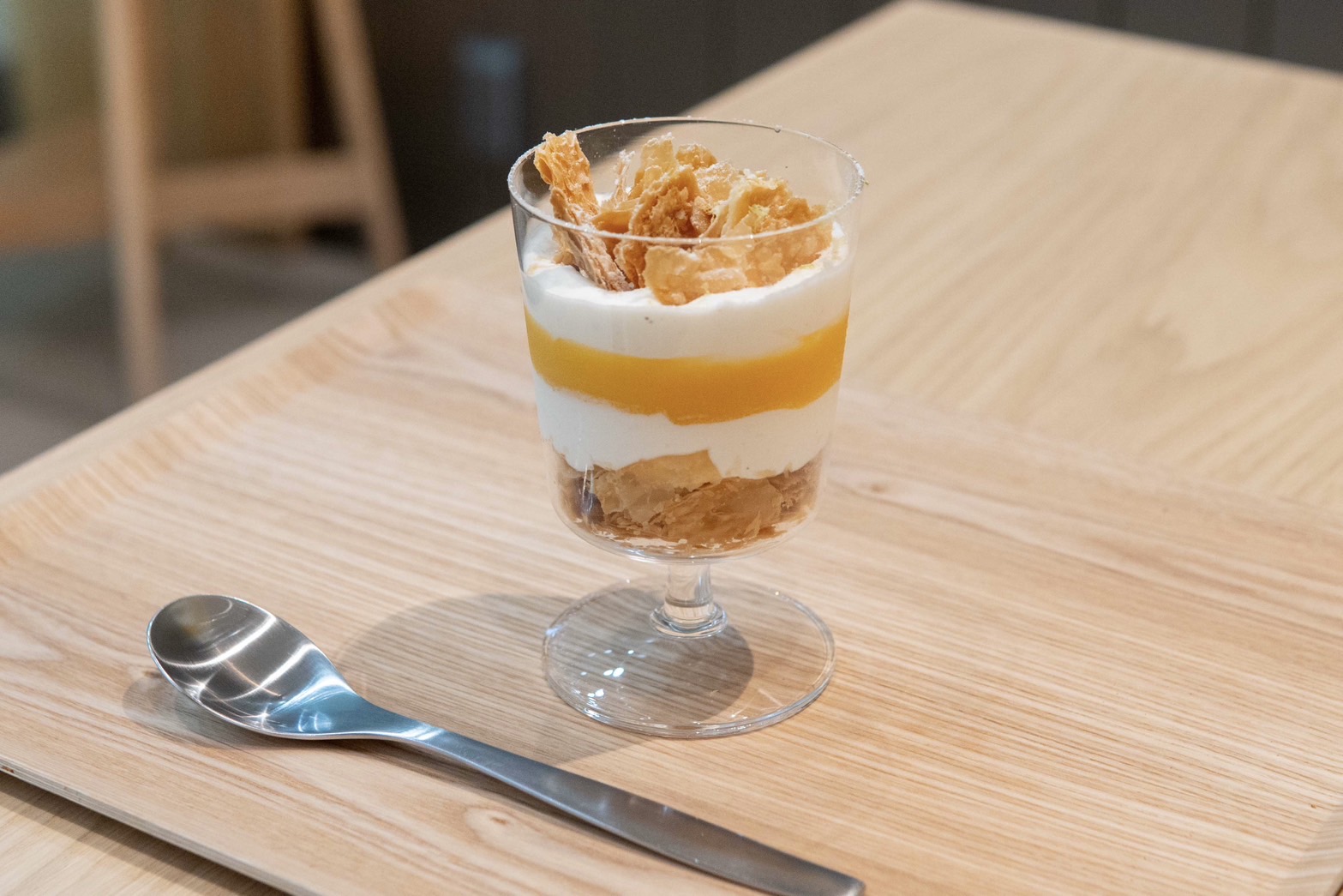 白とレモンイエローのコントラストが涼やかで、グラス越しに美しい層が際立つ、夏にぴったりのシーズナルパフェ。ひと目見ただけで、爽やかな気分にさせてくれます!