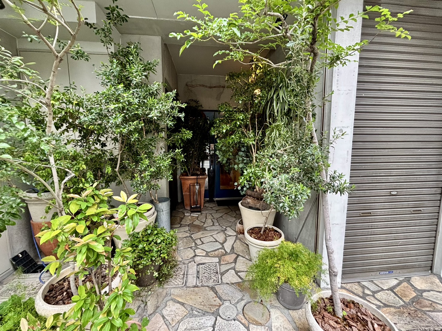 一見、場所を間違えたかのように見えますが、お店の入り口はこの木々の間を通り抜けた先にあります。