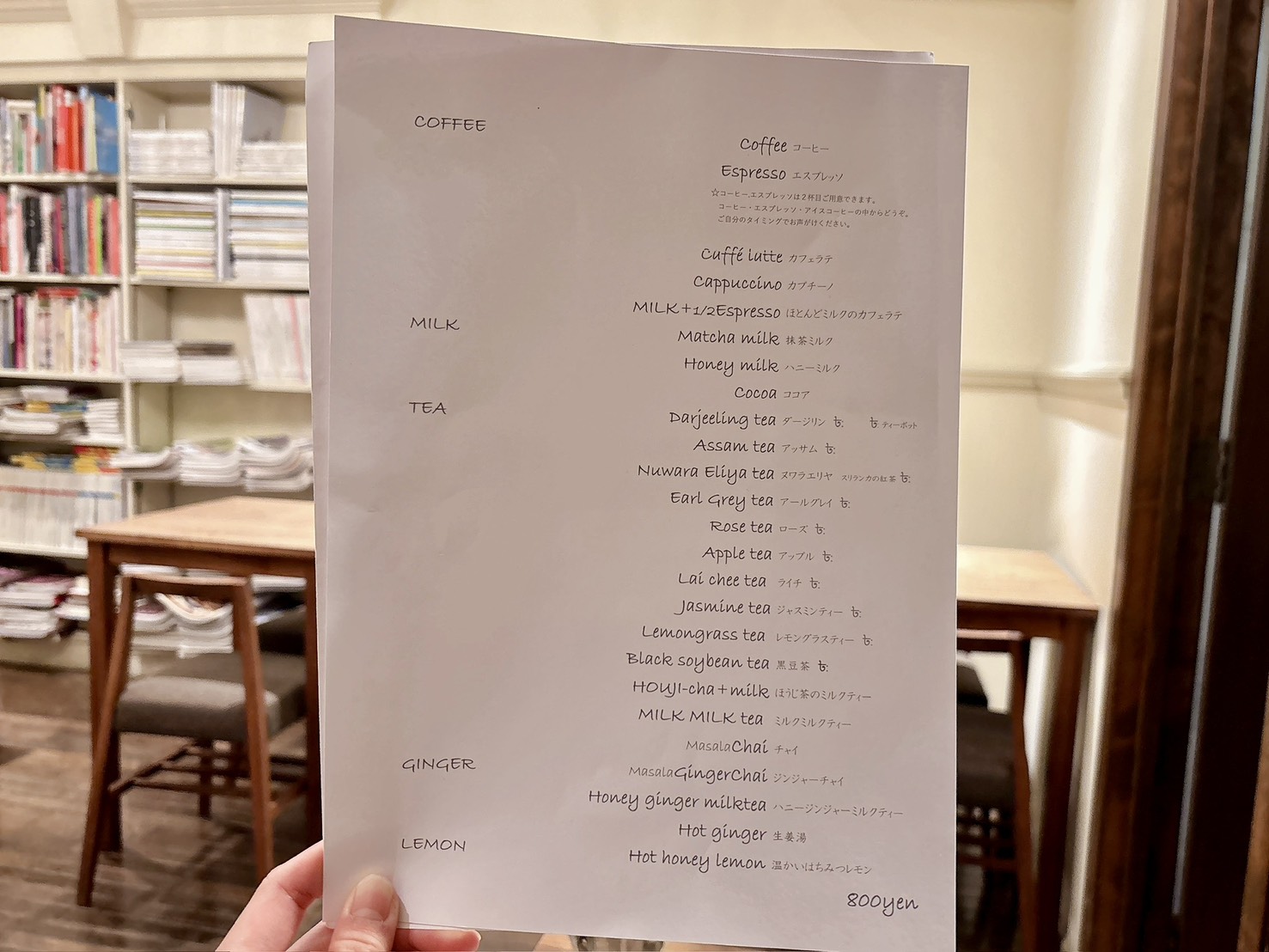 今回はカフェ目的でお店に訪れたため、DRINK +CAKEセットを注文しました。お好きな飲み物とケーキorスコーンを自分で選ぶことができます。