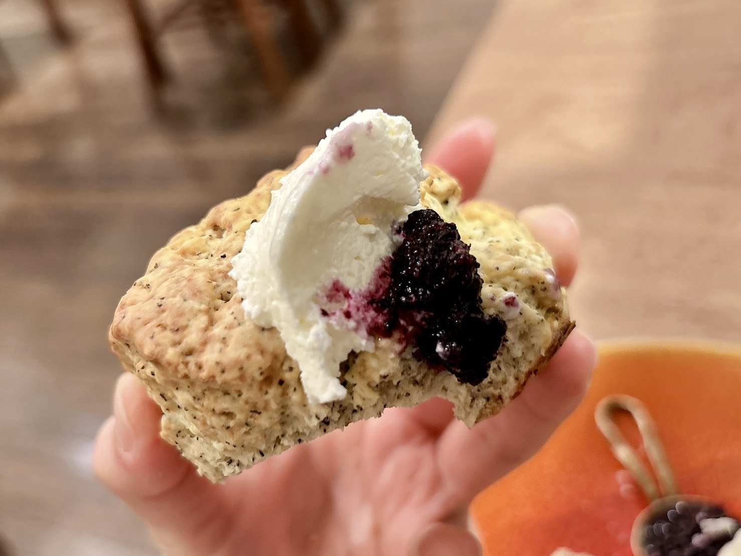 そしてスコーンには、付け合わせのブルーベリーのジャムとクリームが付いており、可愛らしい見た目。
