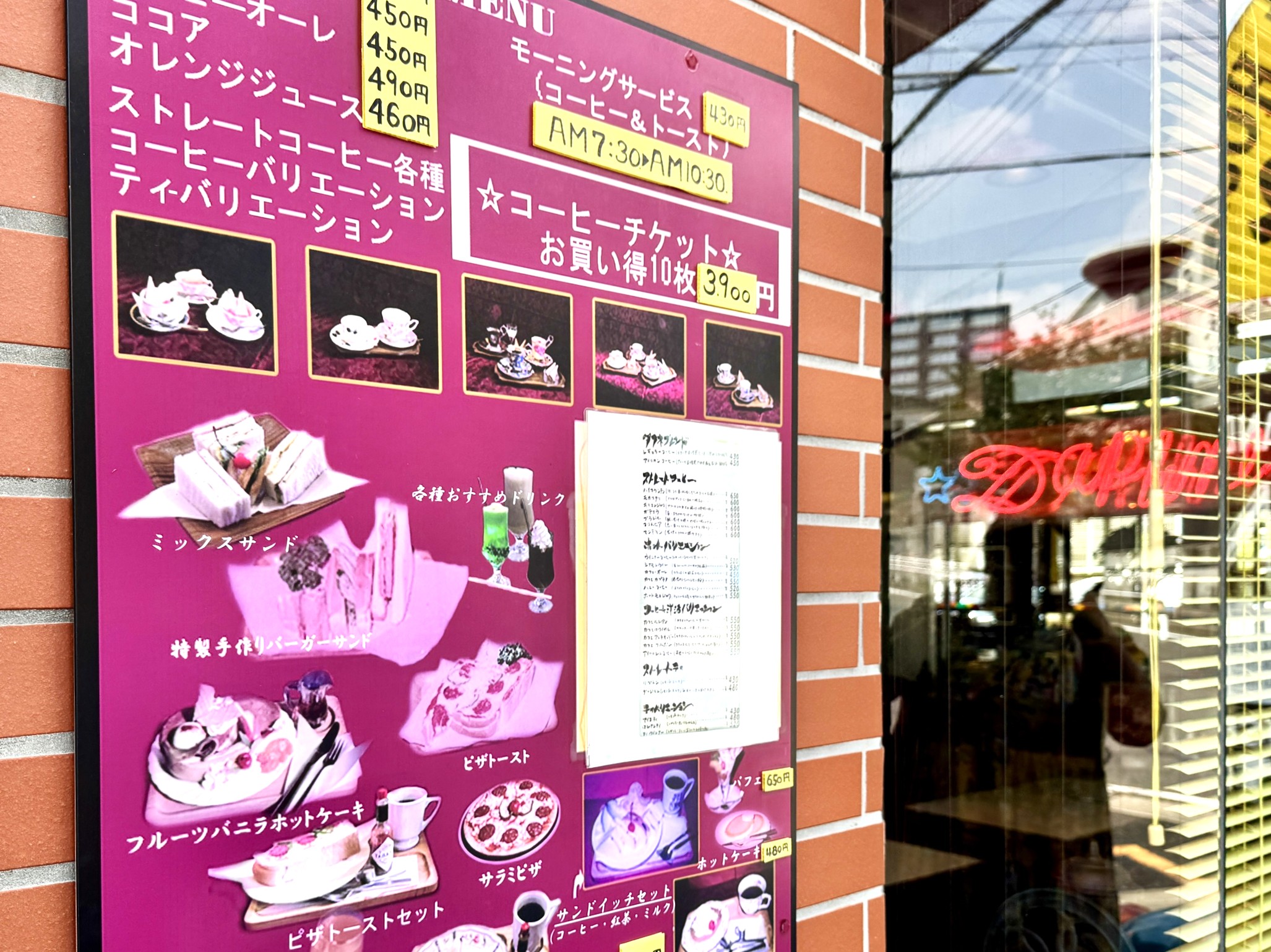 こういったネオンサインはアメリカンダイナーでよく見かける装飾品ですが、同店のような喫茶店に飾られている風景はちょっぴり珍しいですよね!