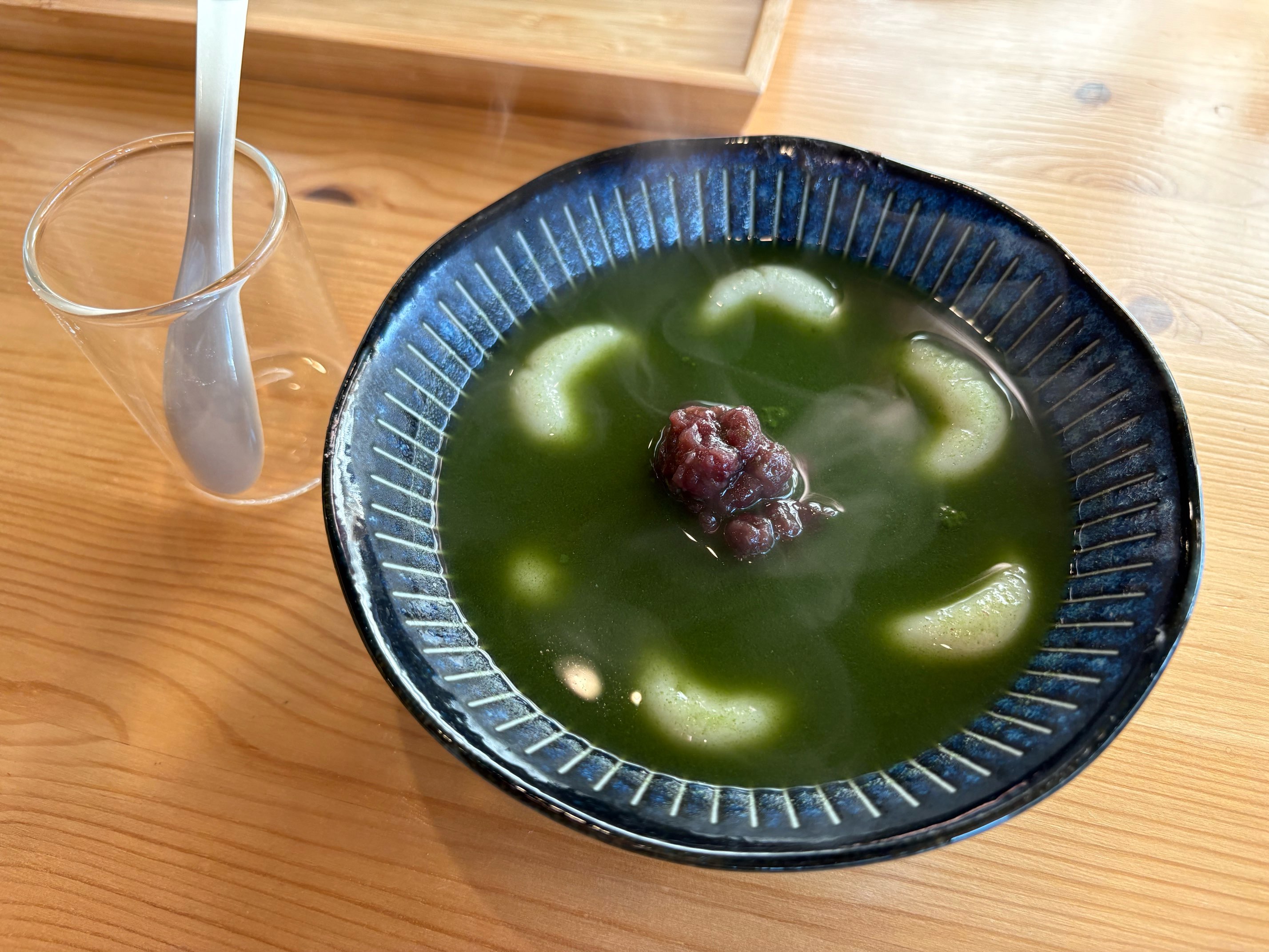 お汁粉は白川茶をより濃くしたものに甘みを加えたお味。くどさは感じませんが、しっかりと甘いものを食べたい人にはうってつけのお味です。