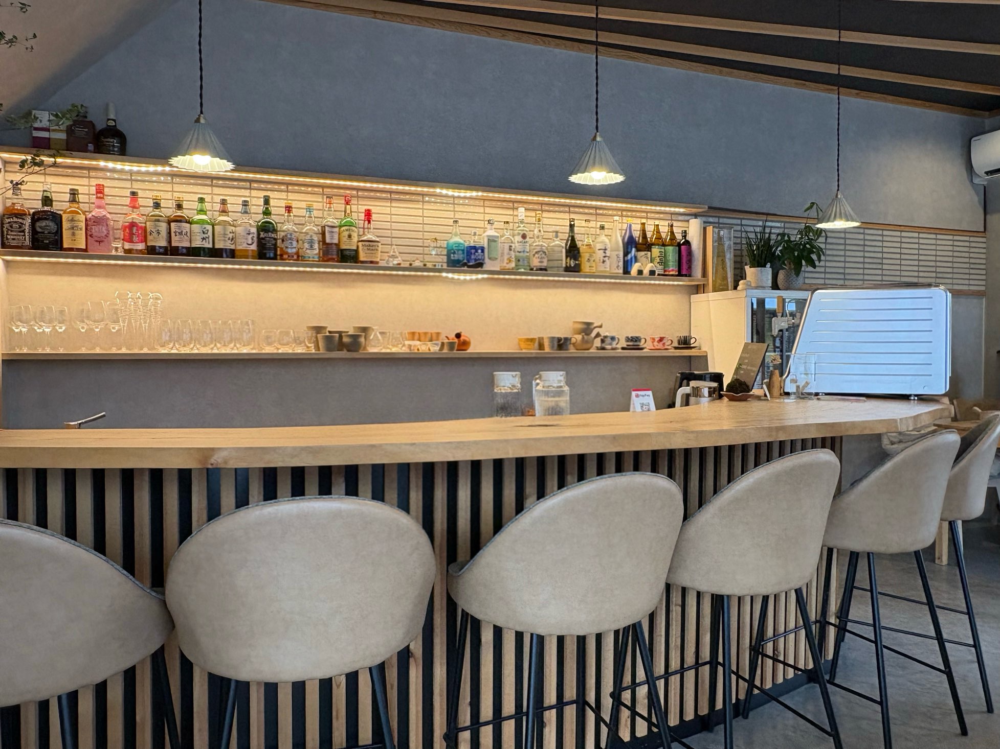 お昼はおにぎりやお餅をメインとするカフェとして、週末の夜は豊富なお酒を楽しめるカフェ&バーとして営業されています。お支払いは現金とPayPayのみ可能です。