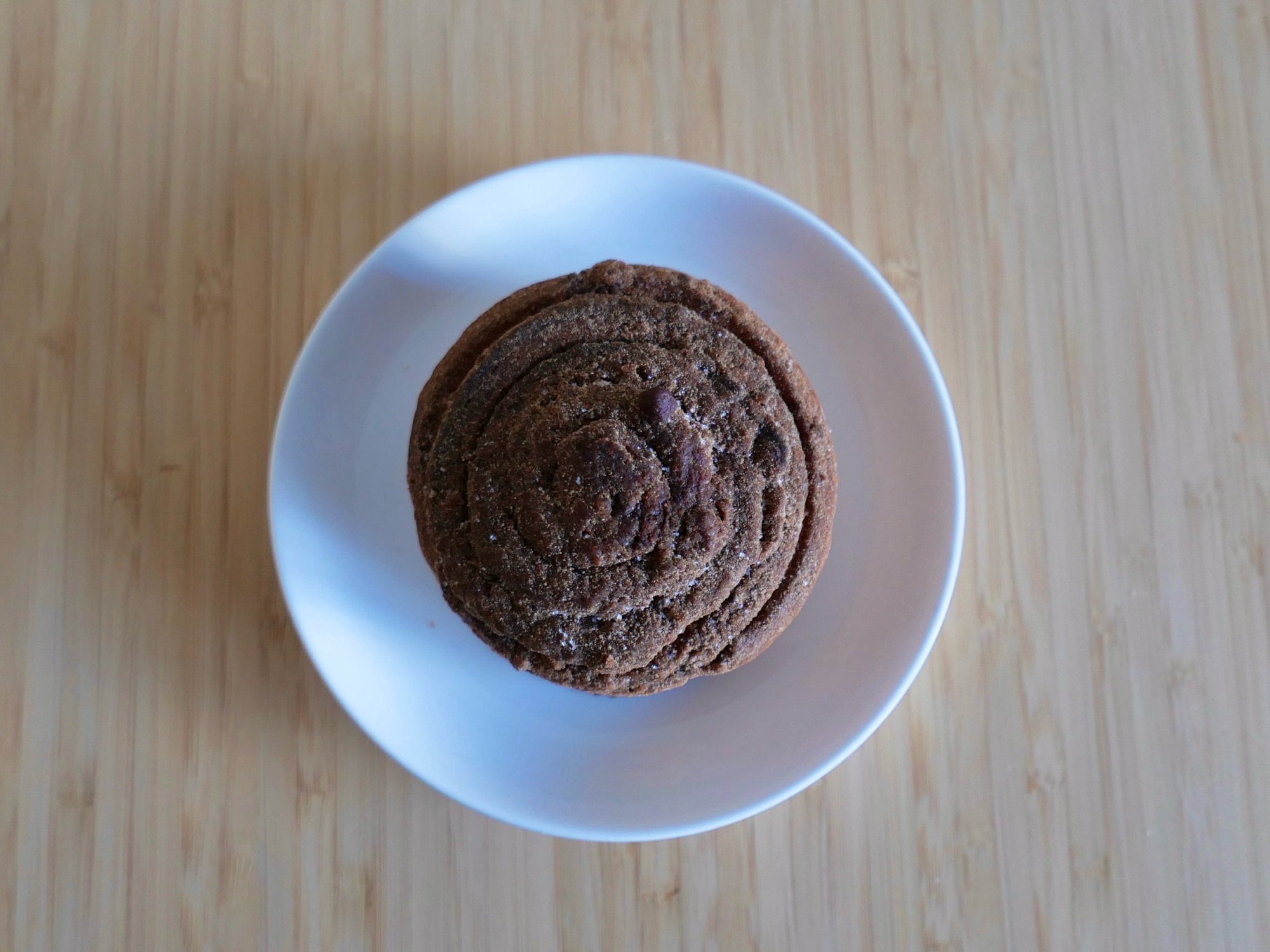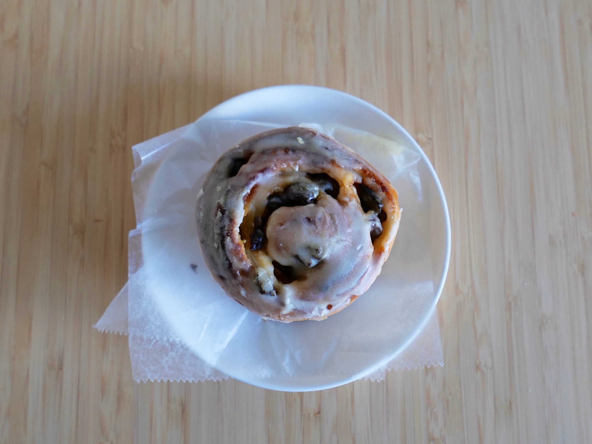 生地は一般的なシナモンロールより少し硬めで、しっかりとした食感です。その上に、きび砂糖のシナモンシュガーがたくさんかかっています。