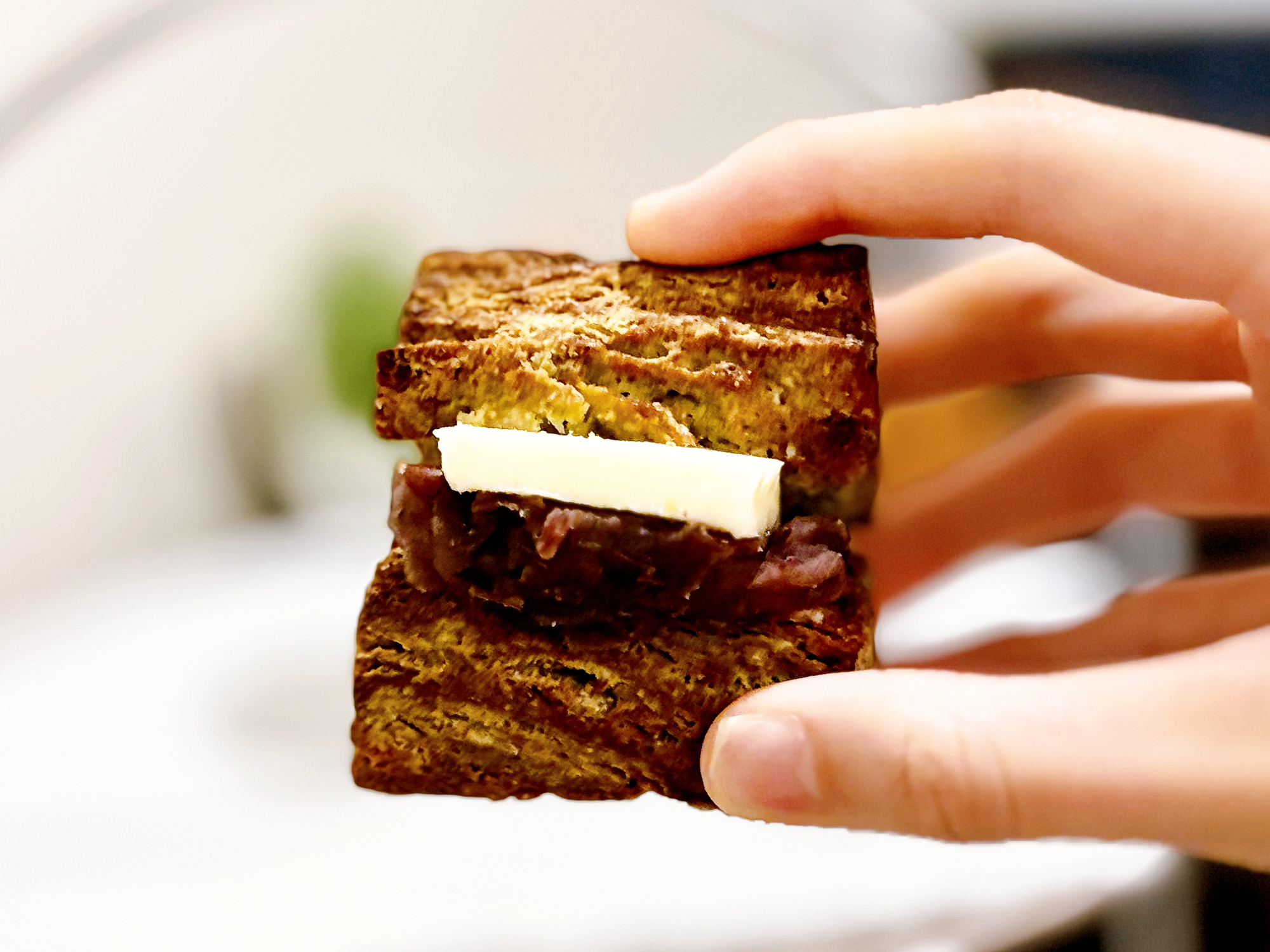 あんバターサンドのスコーンは一度にあんバター・抹茶・スコーンの3種の味が同時に楽しめ、噛むたびに少し異なる食感が感じられます♪