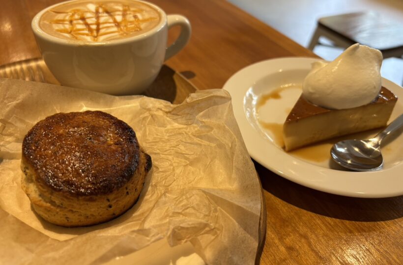 光の差し込む柔らかな店内には、焼きたてスコーンやコーヒーの香ばしい匂いがふわりと漂います。